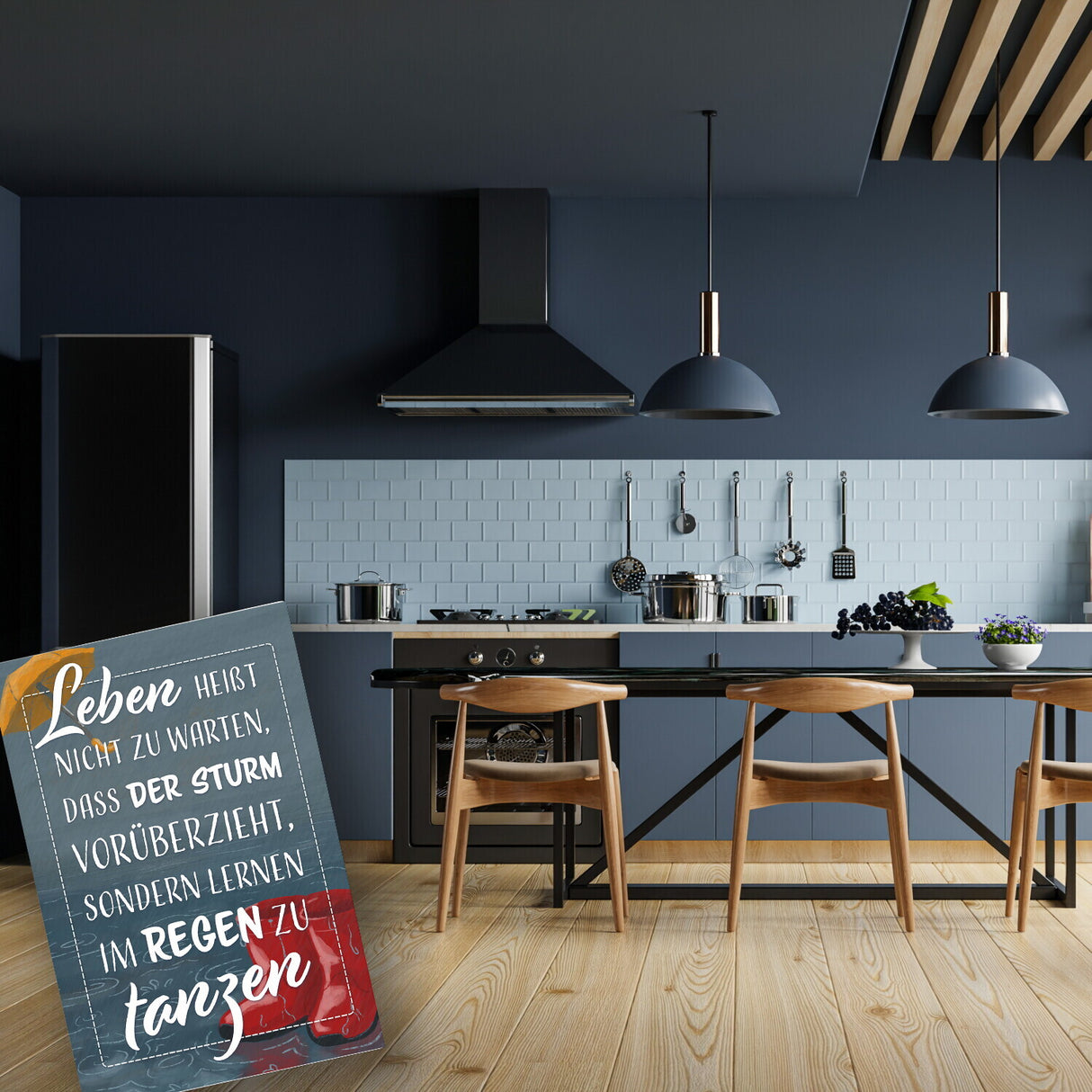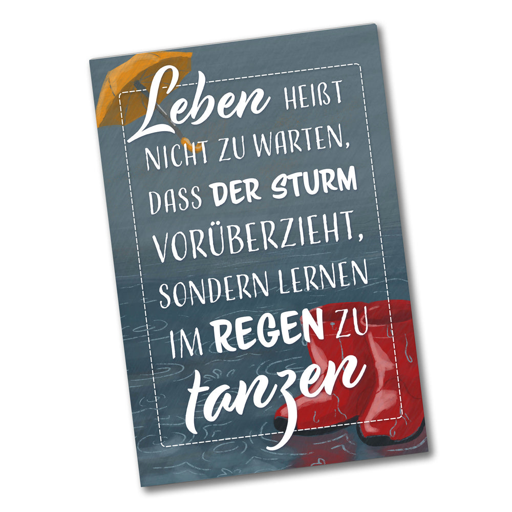 Lebensweisheit Metallschild zum Thema Leben mit Regen-Motiv