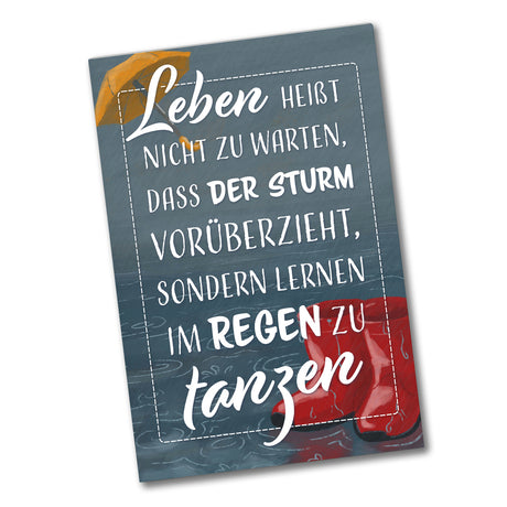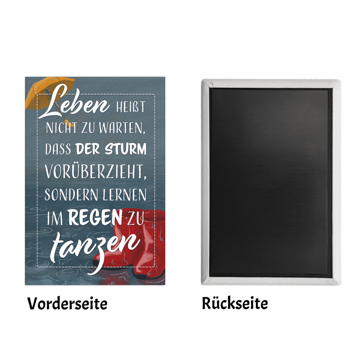 Lebensweisheit Souvenir Magnet mit Regenschirm und Gummistiefeln