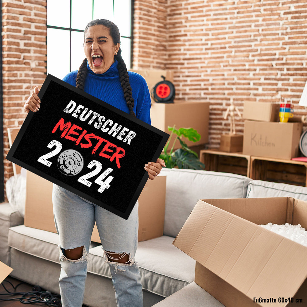 - 1x Leverkusen Meisterschale Fußmatte in 35x50 cm mit Spruch Deutscher Meister 2024 in der gewählten Größe