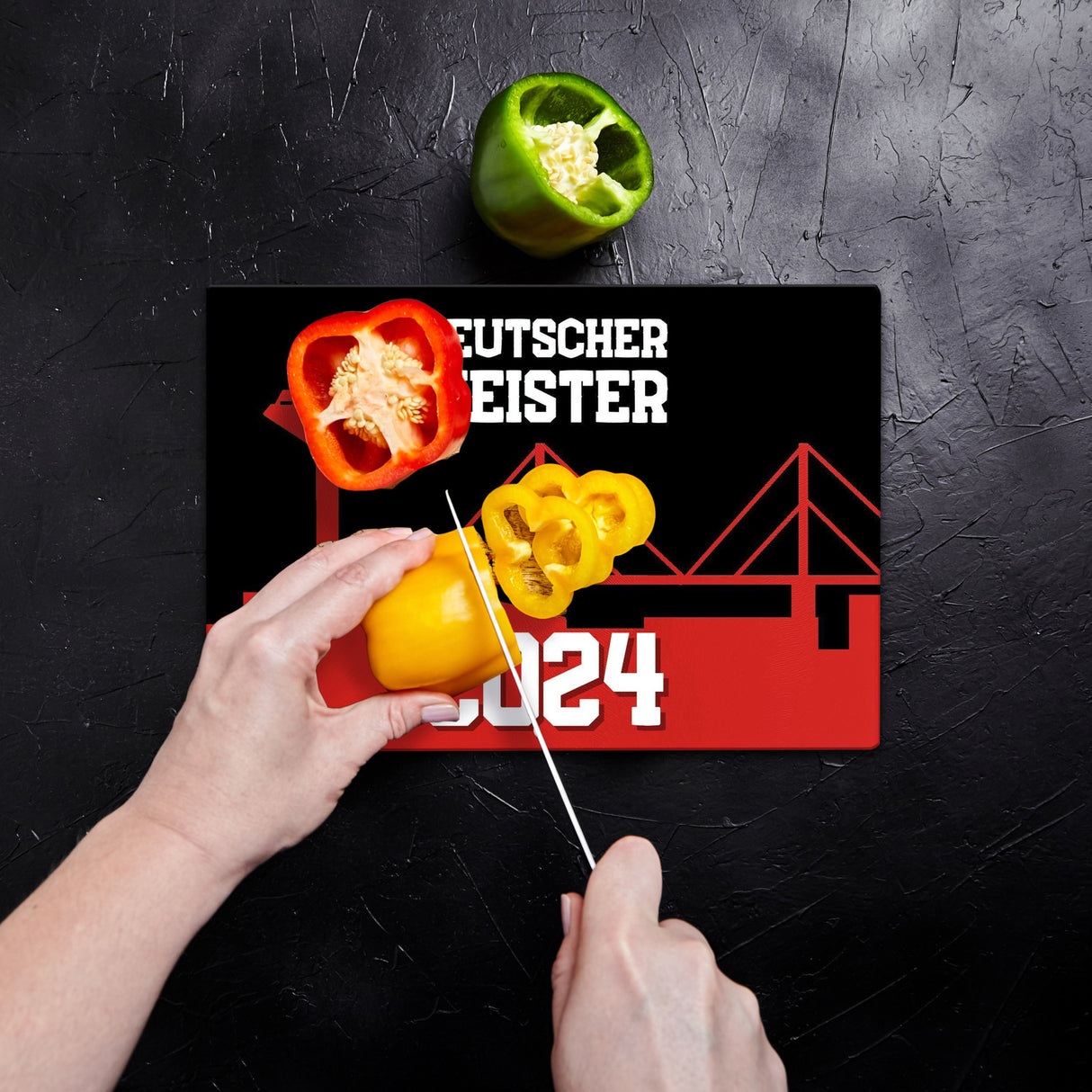 - ?? Dieses Schneidebrett ist mehr als nur eine Küchenhilfe: es ist ein Statement! Zeige bei jedem Snackvorbereiten deine Liebe zur Leverkusen-Mannschaft. Hol dir die Rheinbrücke auf deine Arbeitsfläche und starte die Saison, als wäre der Titel schon sicher. Für echte Fans, die mit Humor schneiden!