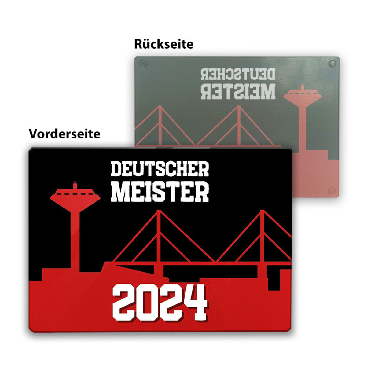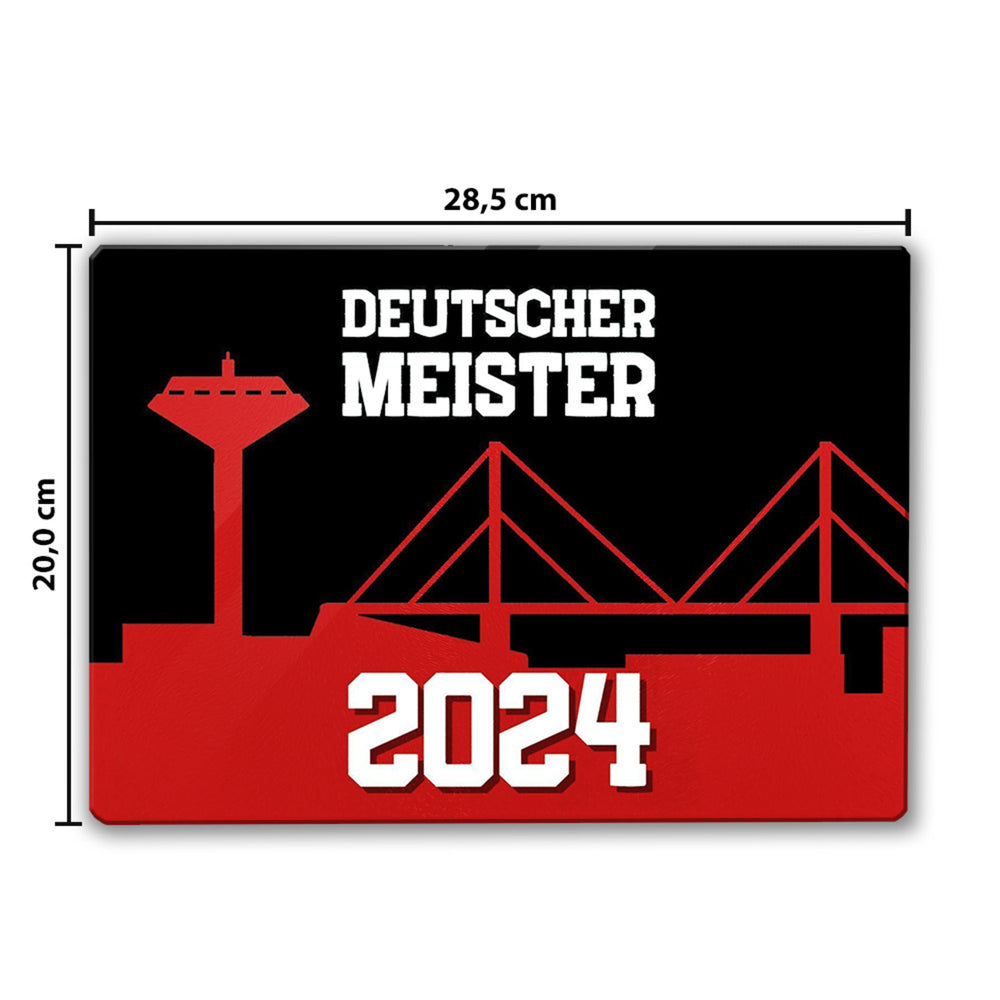 - 1x Leverkusen Schneidebrett aus Glas Glas mit Spruch Deutscher Meister 2024 in der gewählten Größe