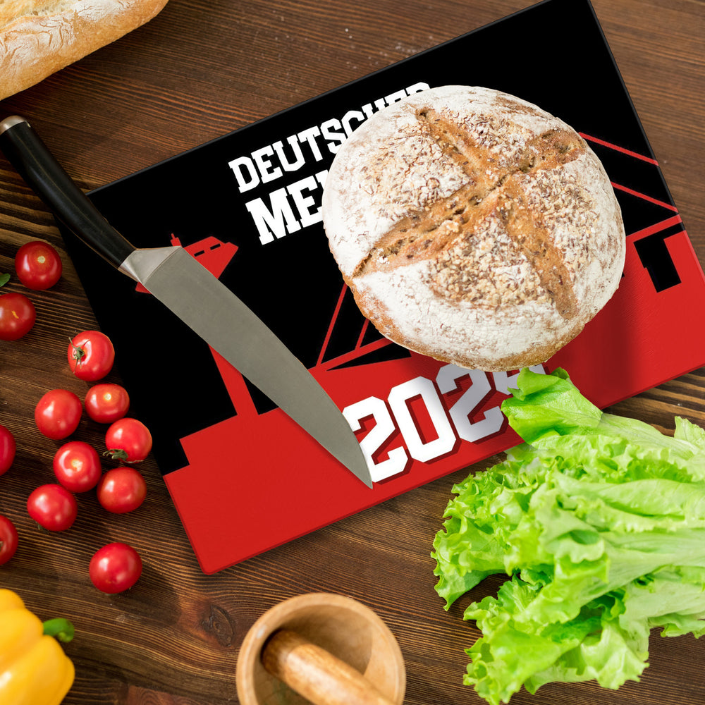 Leverkusen Schneidebrett aus Glas Glas mit Spruch Deutscher Meister 2024 - 28,5x20 cm ist auf Lager und wird versandt, sobald es wieder verfügbar ist
