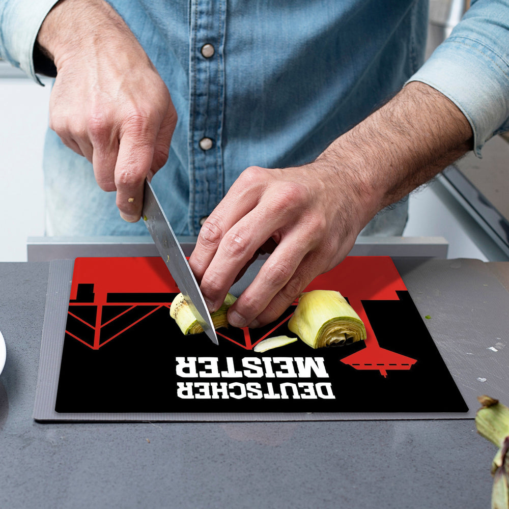 - ?? Zaubere beim Zwiebelschneiden Tränen der Freude mit dem Leverkusen Schneidebrett aus Glas! Ein Meisterwerk in Schwarz, Rot und Weiß, das die Skyline von Leverkusen ziert – Wasserturm inklusive. Ideal für geschnittene Würstchen zur Halbzeit oder Meister-Salate. "Deutscher Meister 2024" – Optimismus, der schneidet!