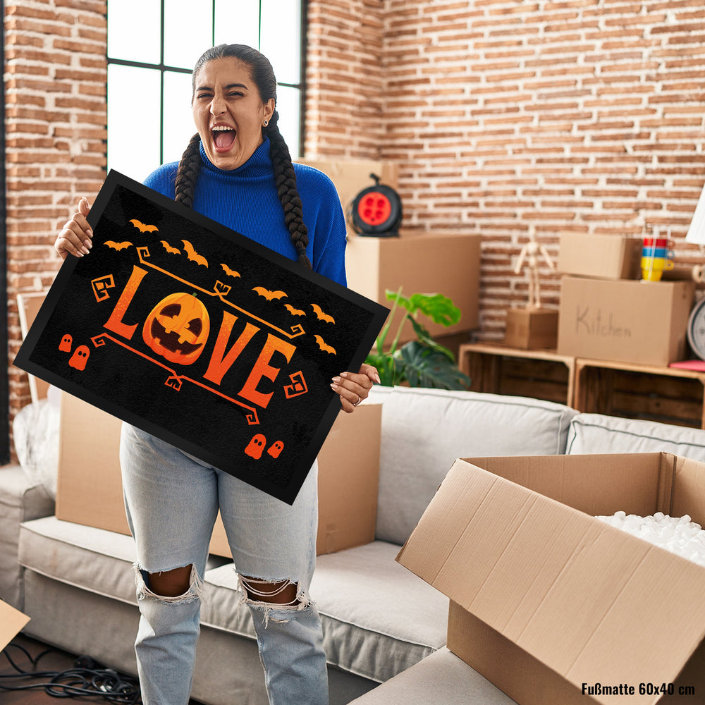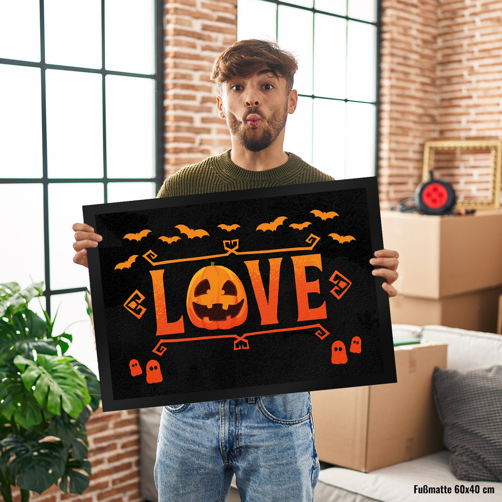 - 1x Love Fußmatte für Halloween mit Kürbis in der gewählten Größe