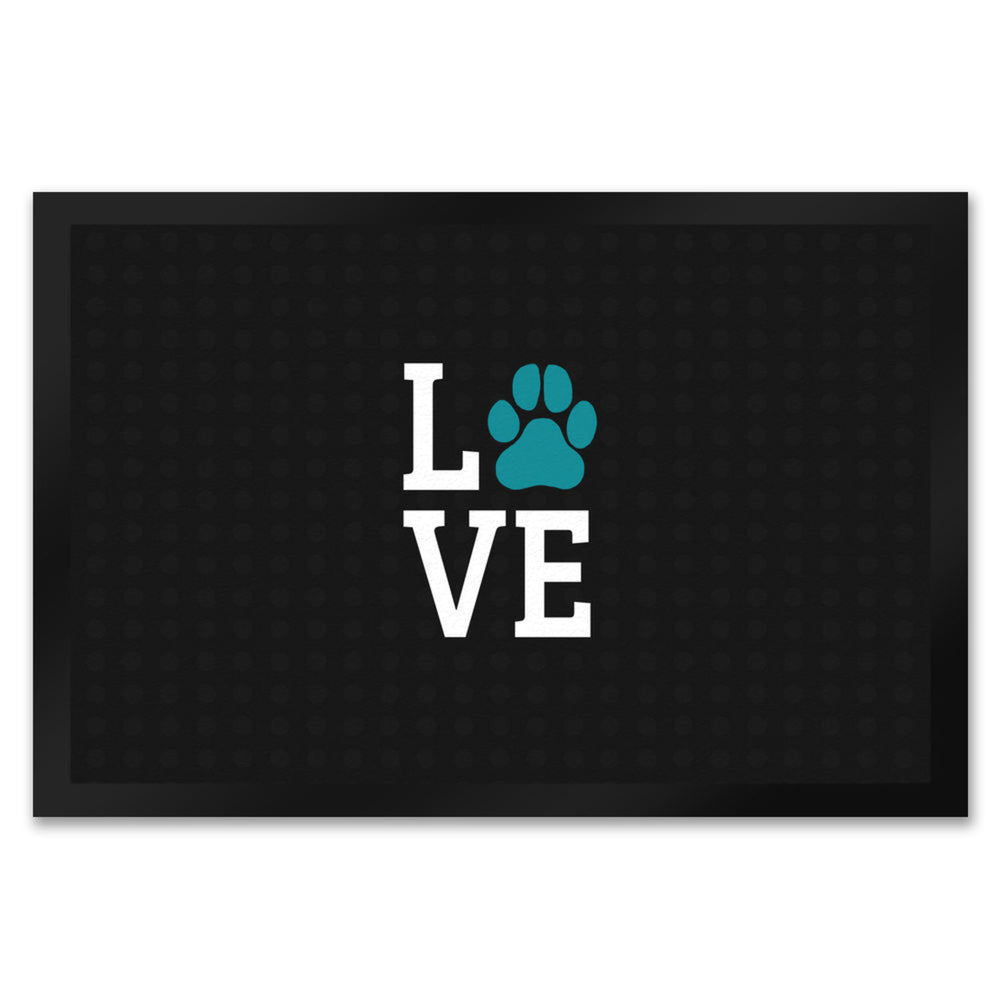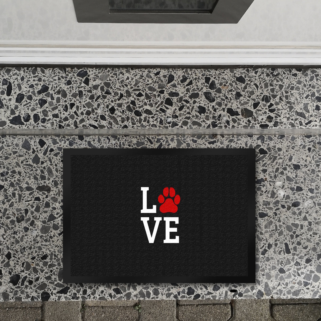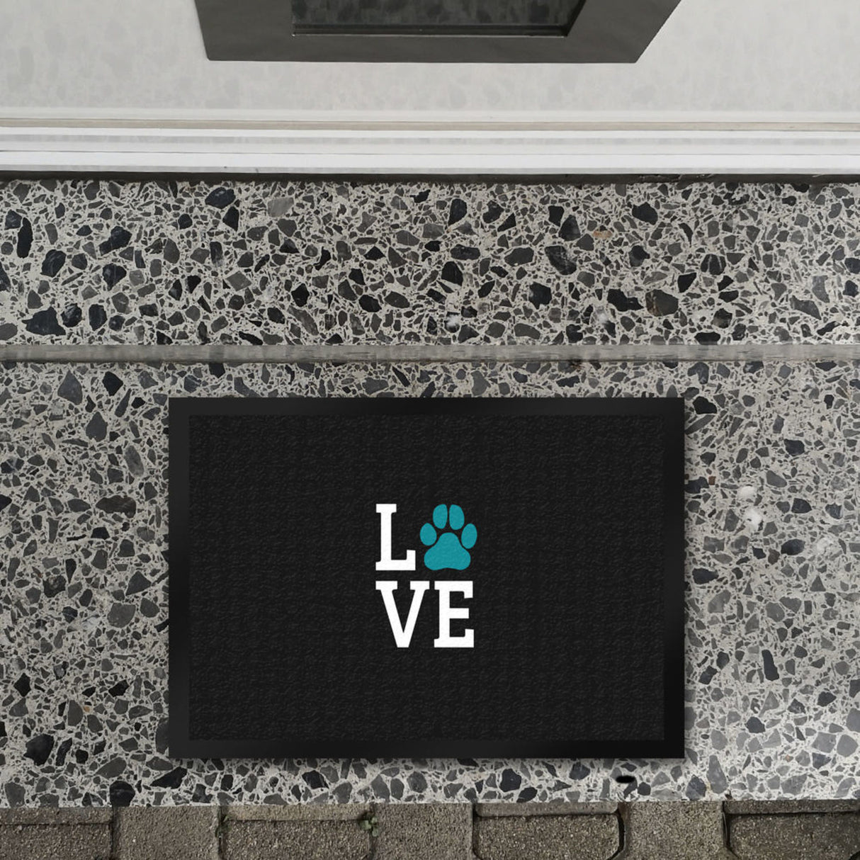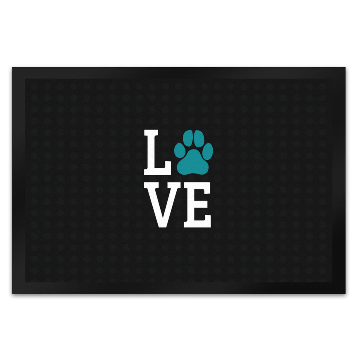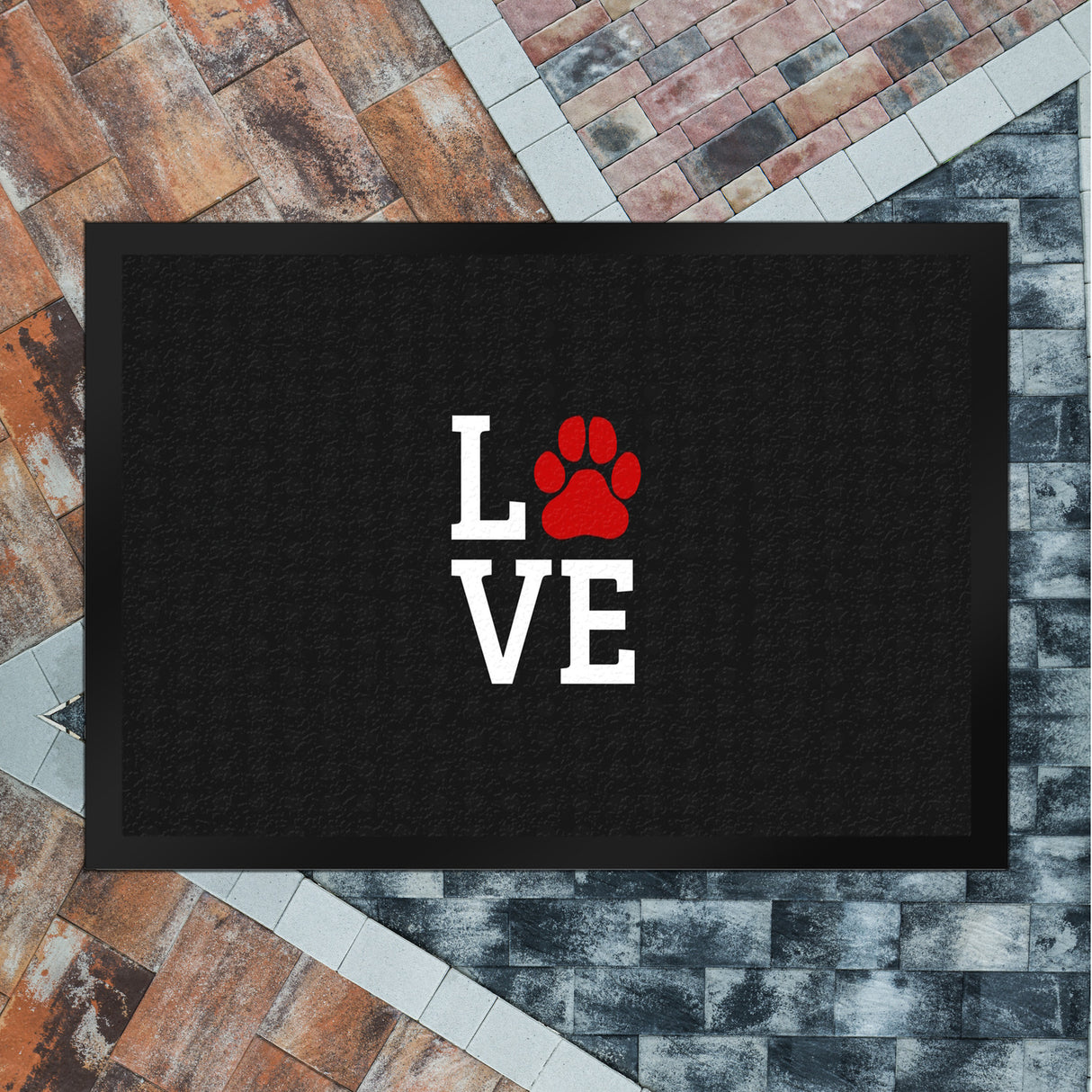 • 1x Love Fußmatte mit Pfote Motiv - Hund Hunde Familie wohnen Wohnung Liebe in der gewählten Größe