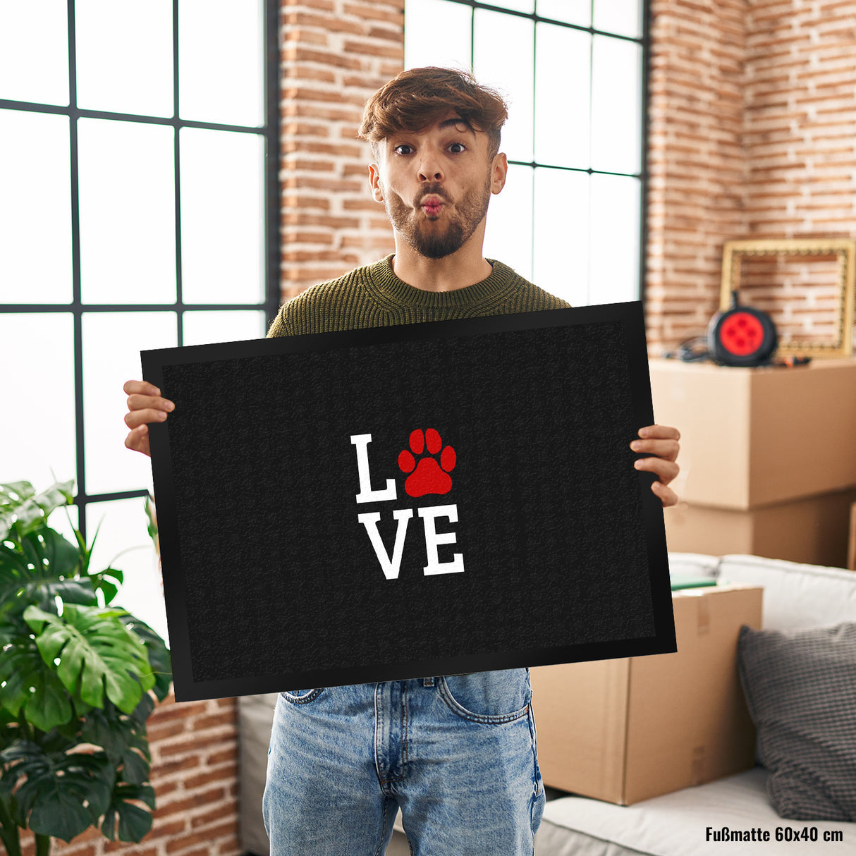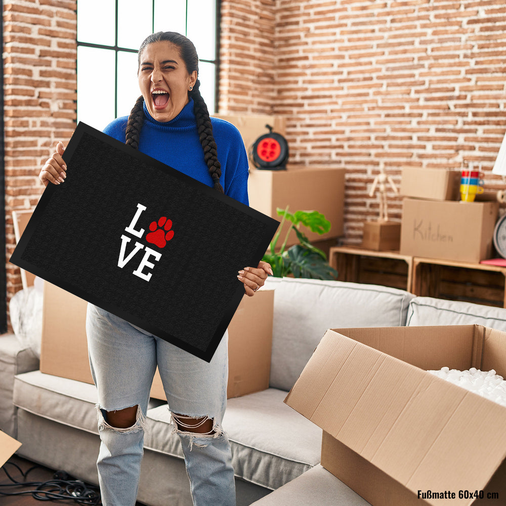 Love Fußmatte mit Pfote Motiv - Hund Hunde Familie wohnen Wohnung Liebe