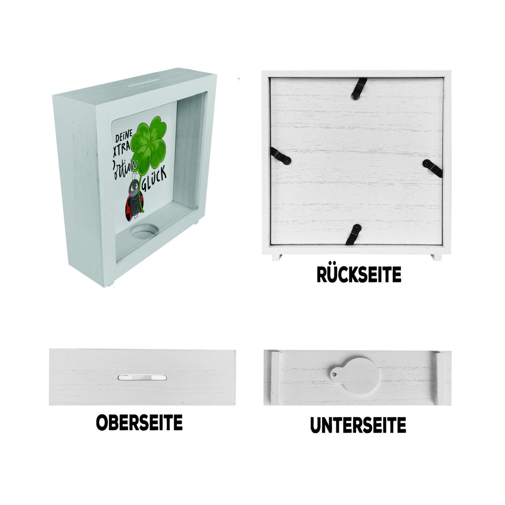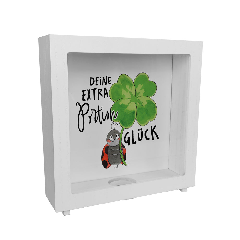 - 1x Marienkäfer Spardose mit Spruch Deine extra Portion Glück in der gewählten Ausführung