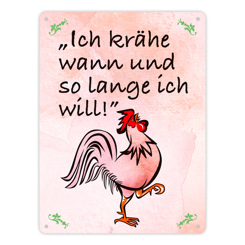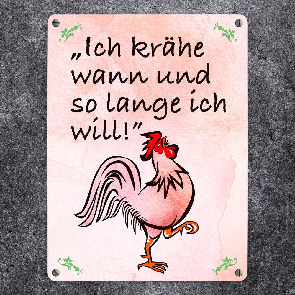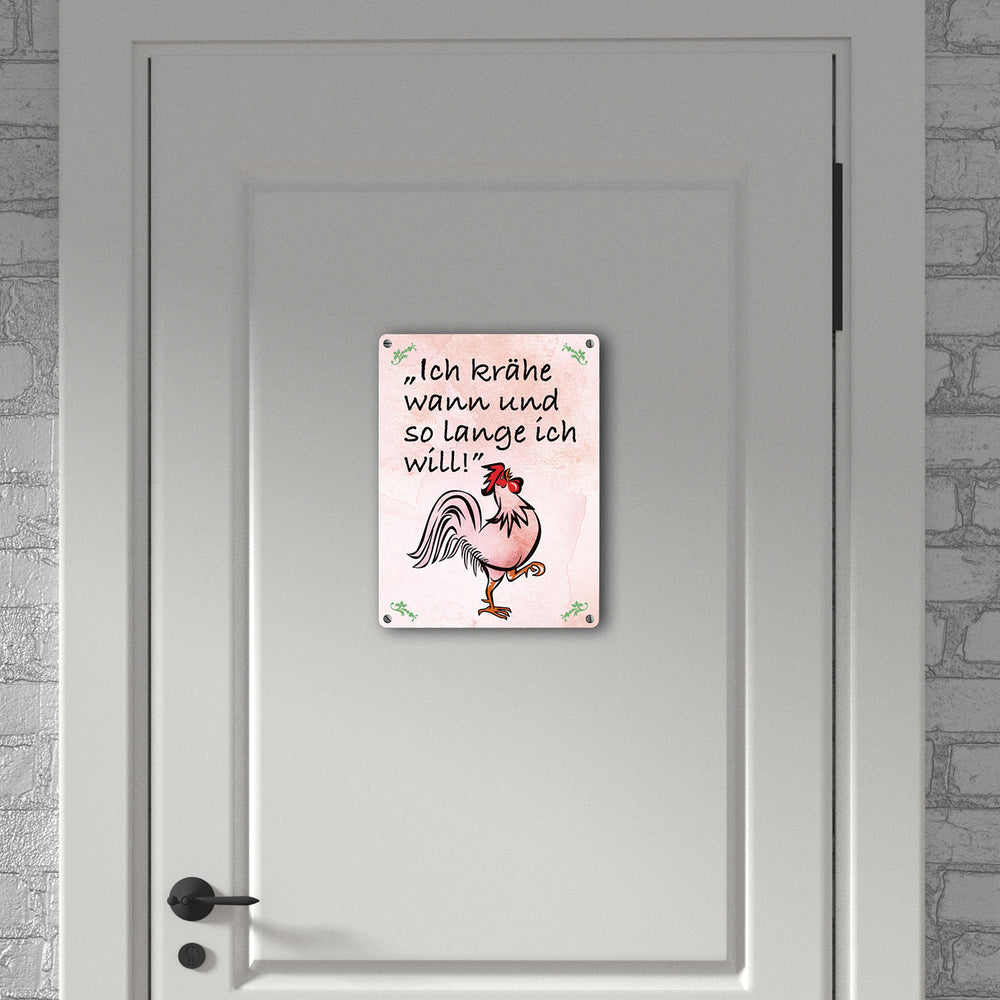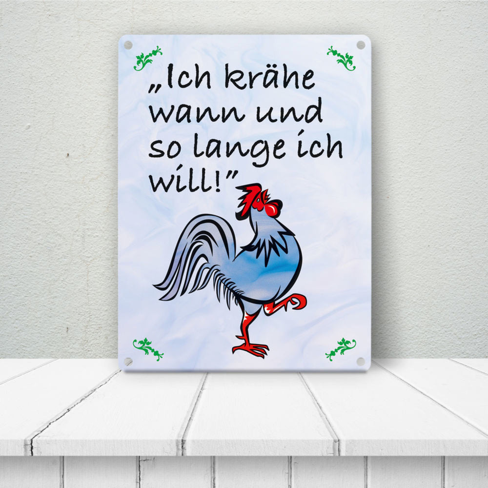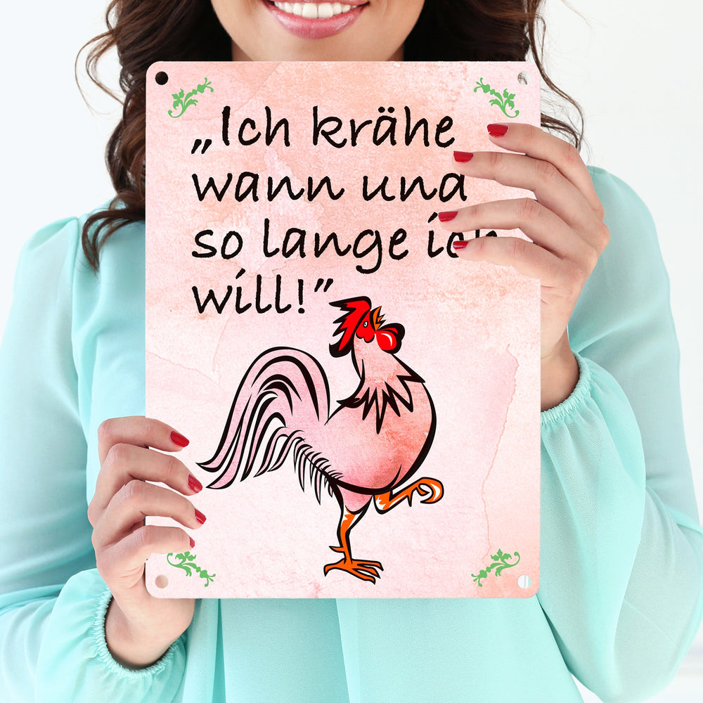 Hahn Metallschild mit Spruch: Ich krähe wann und solange ich will!