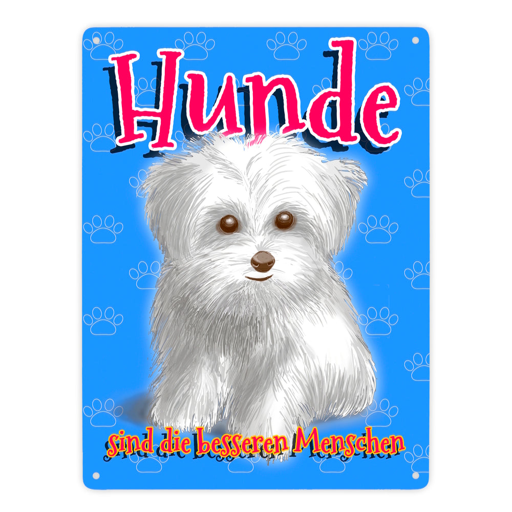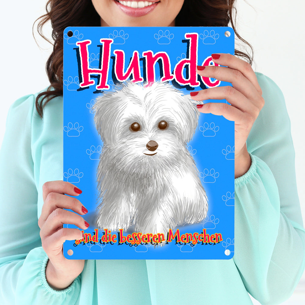 - 1x Metallschild mit Hunde Motiv und Spruch - Hunde sind die besseren Menschen in der gewählten Größe