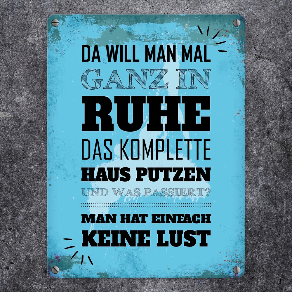 • 1x Metallschild mit Spruch: Keine Lust auf Hausputz in der gewählten Größe