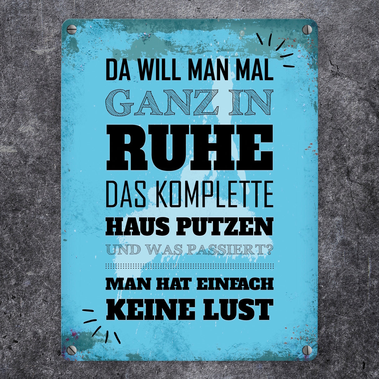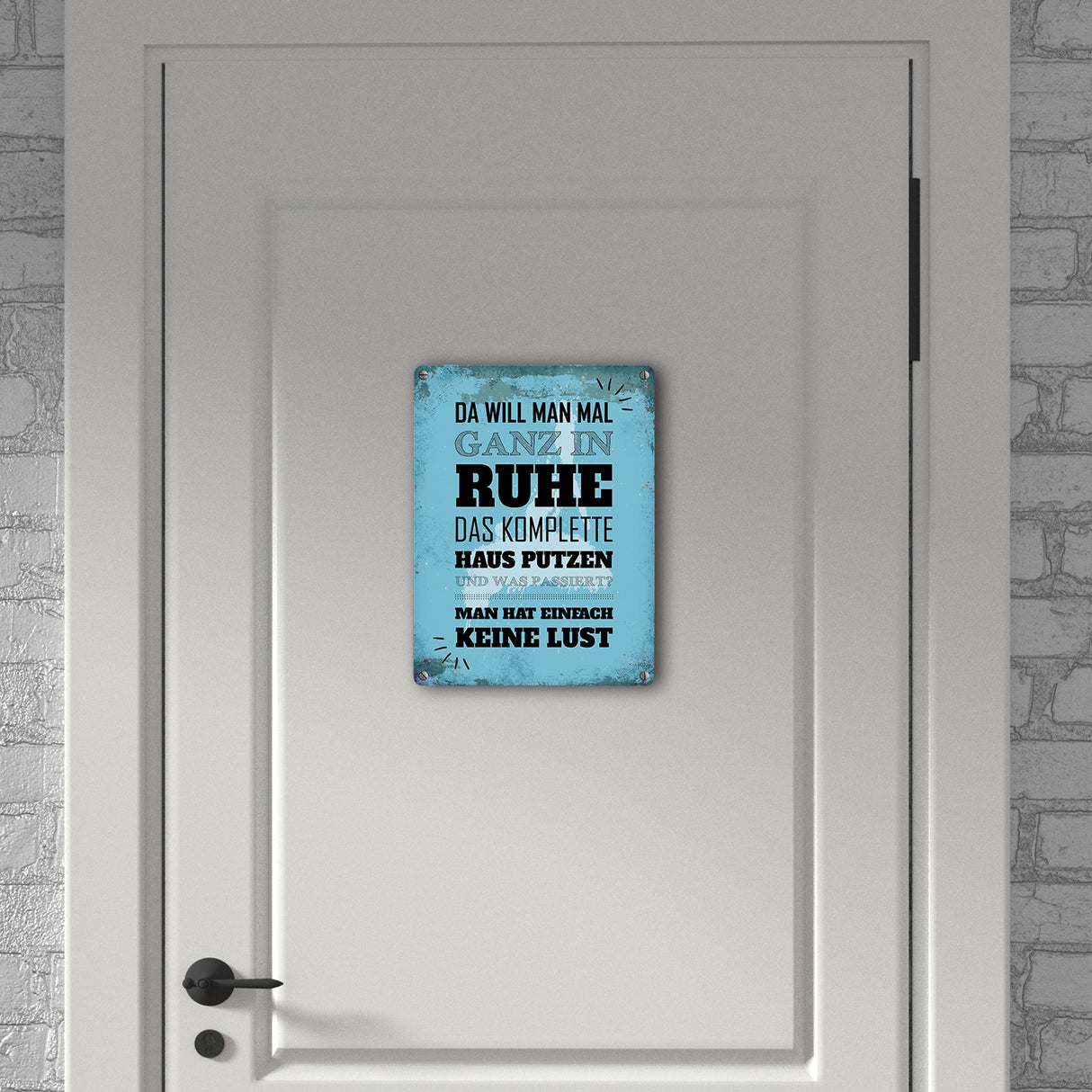 Metallschild mit Spruch: Keine Lust auf Hausputz