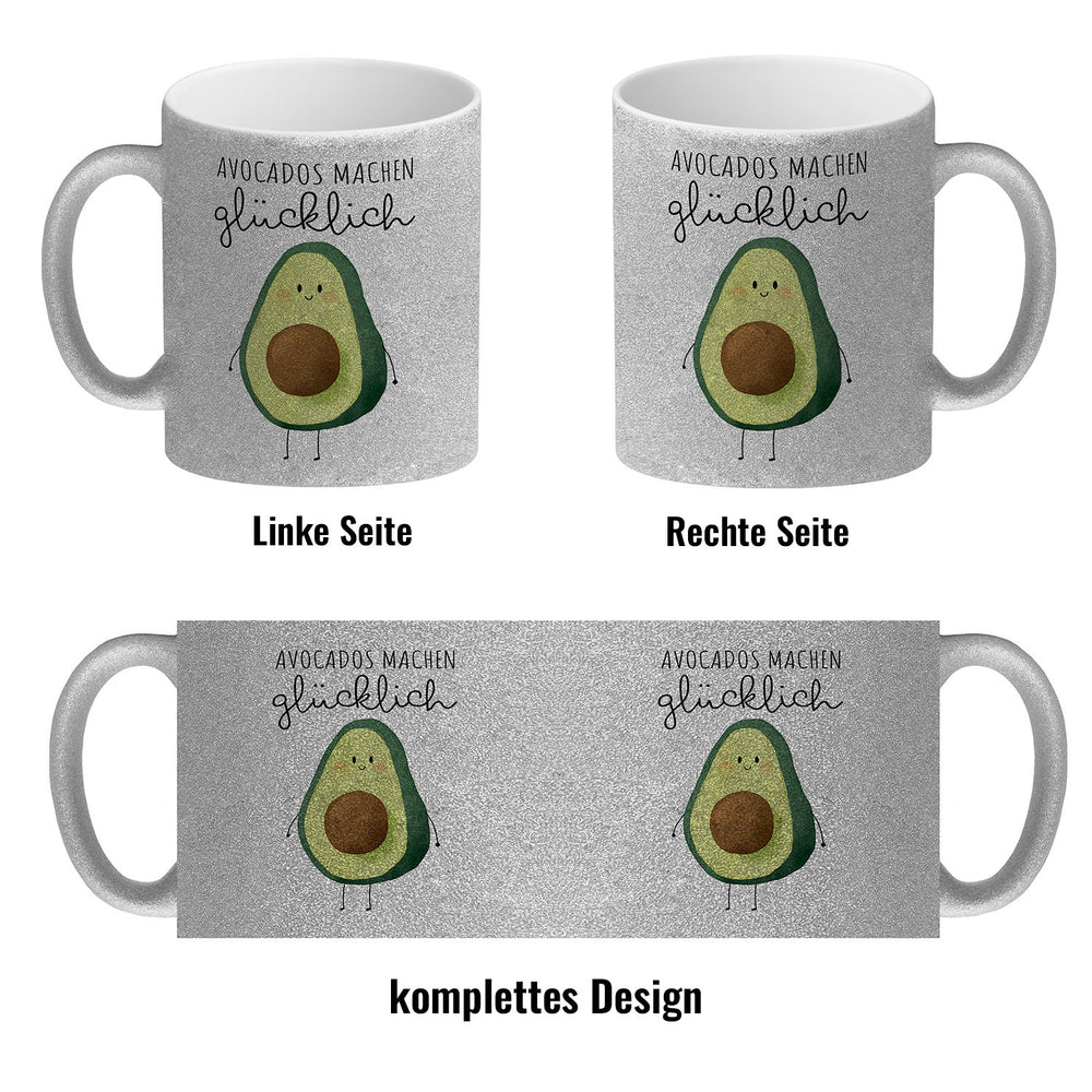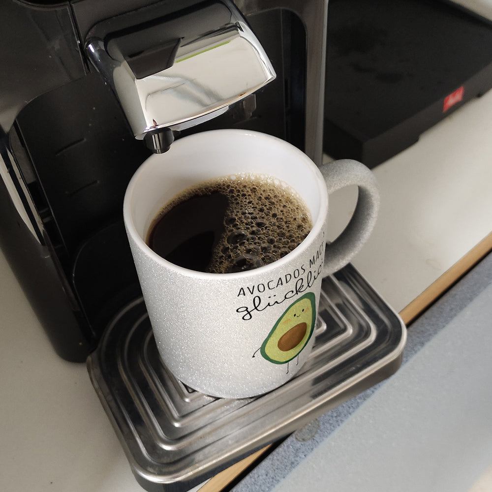Wusstest du, dass Avocados nicht nur für Toast oder Guacamole gut sind? Sie zaubern auch ein Lächeln auf deinen Becher! Unser Avocados machen glücklich Kaffeebecher ist mehr als nur ein Gefäß für deinen Morgenkaffee – er ist der tägliche Stimmungs-Booster für die avocado-liebende Seele! Erlebe, wie dieses niedliche Tässchen mit dem grinsenden Avocado-Gesicht deine Liebsten beim Öffnen zum Strahlen bringt. Es ist das Idealgewicht auf der Freude-Skala und ein Muss für jeden, der seine Liebe zu dieser grünen Frucht stolz zur Schau stellen möchte. Von der gemütlichen Küchenecke bis hin zum glamourösen Weinkeller – dieser Becher fühlt sich überall wie zu Hause und paspt perfekt zu all deinen Lieblingsgetränken. Das robuste Design trotzt den täglichen Herausforderungen und die vielfältigen Ausführungen – von klassisch-weiß bis hin zur glitzernden Silberedition – machen ihn zum perfekten individuellen Geschenk. Verschenke mehr als nur einen Becher, verschenke tägliche Glücksmomente und begeisterte Lächeln beim ersten Schlürfen. Ob es nun ein Wachmacher-Cappuccino oder ein entspanntes Glas Wein ist – dieser Avocado Kaffeebecher ist immer die richtige Wahl. ????