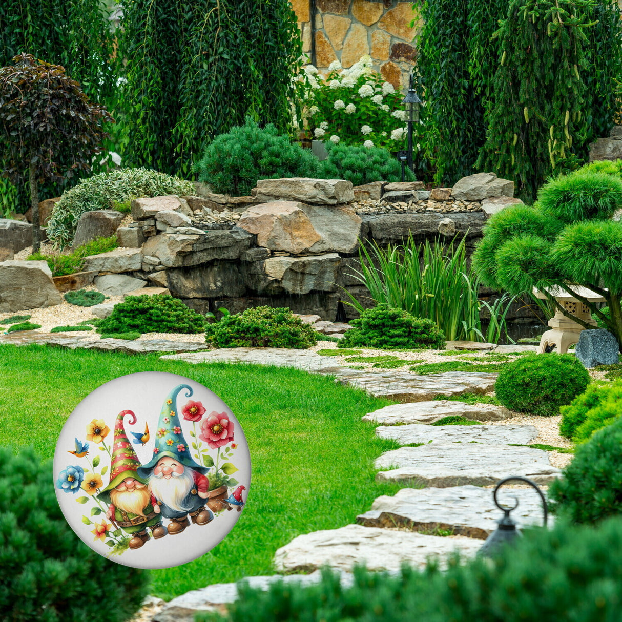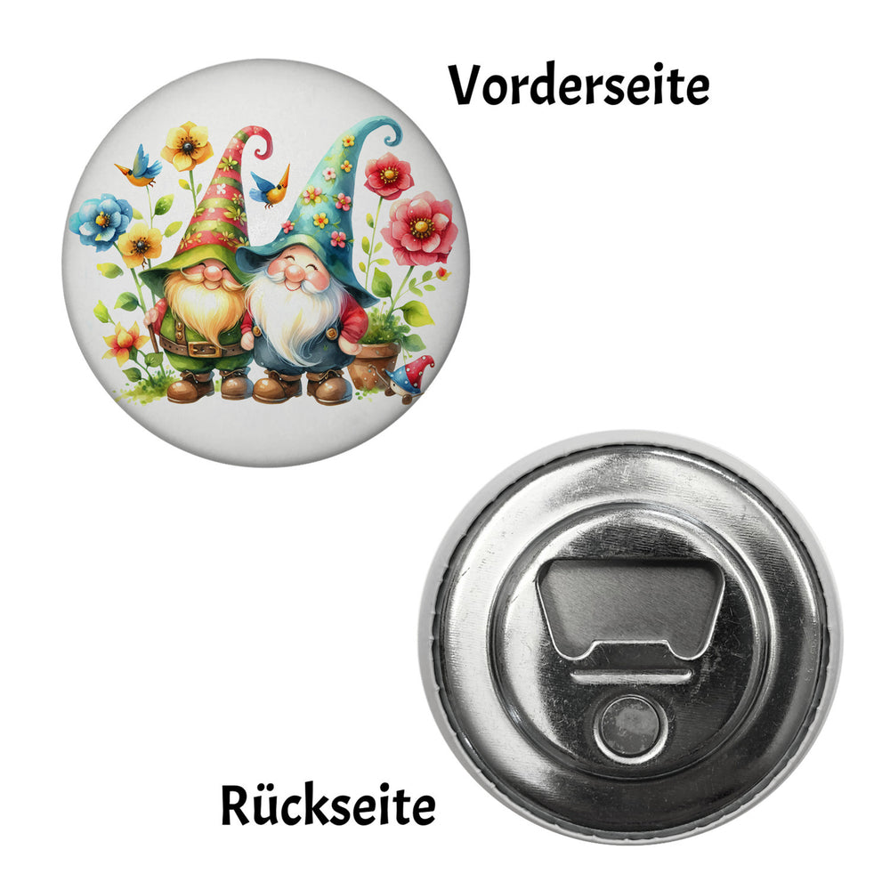 Gartenzwerge mit Blumen Magnet rund