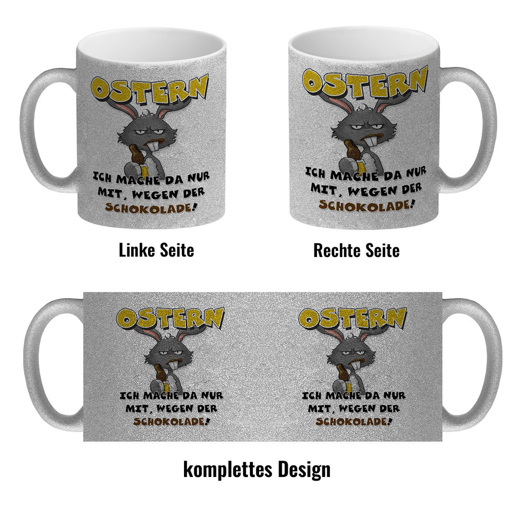 • 1x Ostern Ich mach da nur mit wegen der Schokolade! Kaffeebecher in der gewählten Ausführung