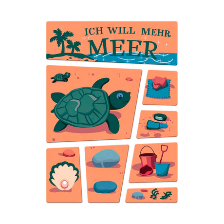 Ich will mehr Meer Sandstrand mit Palmen Kühlschrankmagnete im Set