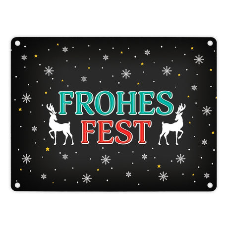 Frohes Fest Metallschild mit Rentier und Sterne Motiv
