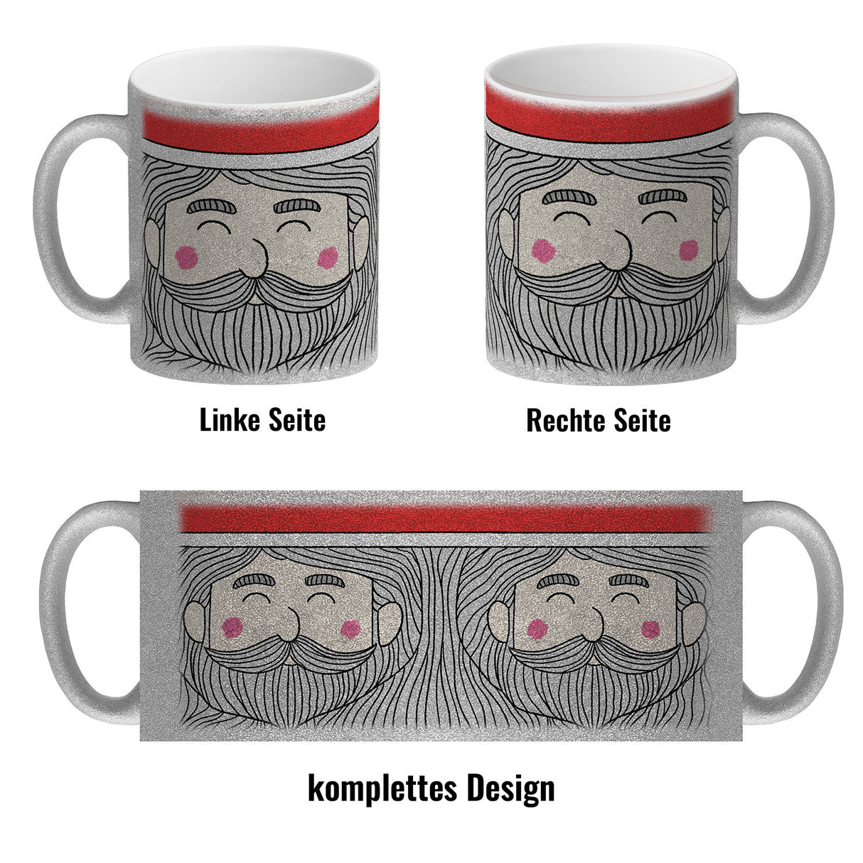 Starte die Weihnachtszeit mit dem Santa Claus Kaffeebecher! Mit seinem weihnachtlichen Motiv ist er ein zauberhafter Begleiter für heißen Glühwein, Kaffee oder Tee. Erhältlich in unterschiedlichen Varianten, wie als Standardtasse, mit farbigem Henkel und Innenseite, als edle Glastasse oder in der exklusiven Silberedition mit Glitzereffekt. Jeder Becher wird in Handarbeit hergestellt und überzeugt durch einen hochwertigen Druck in bunten und leuchtenden Farben. Ein tolles Geschenk für Freunde, Familie oder Kollegen! Genieße die Vorweihnachtszeit mit dem Santa Claus Kaffeebecher - ein Muss für jeden Weihnachtsfan!