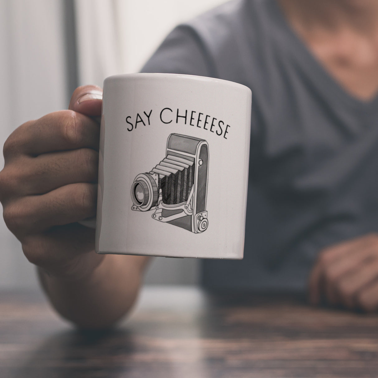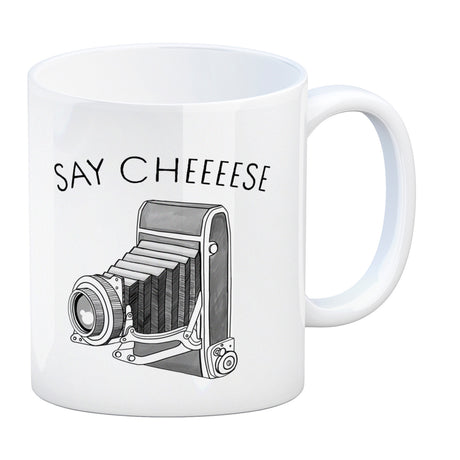 Say cheeeese Kaffeebecher für Fotografen mit Retro Kamera Motiv