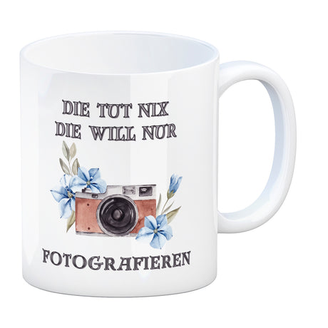 Fotografieren Kaffeebecher mit Spruch Die tut nix die will nur Fotografieren