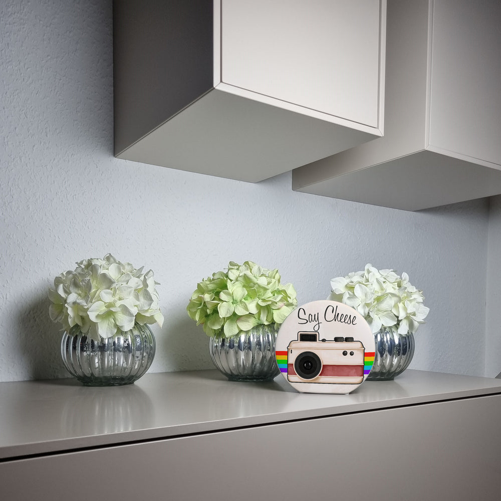 - 1x Say Cheese Spardose mit Retro Kameramotiv in der gewählten Ausführung