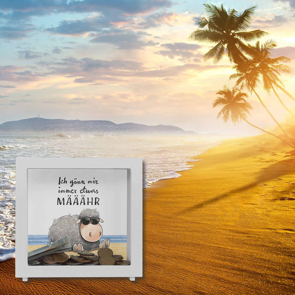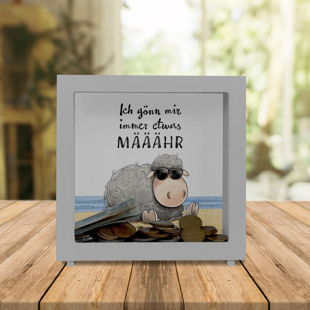 - 1x Schaf Spardose mit Spruch Ich gönn mir immer etwas MÄÄÄHR in der gewählten Ausführung