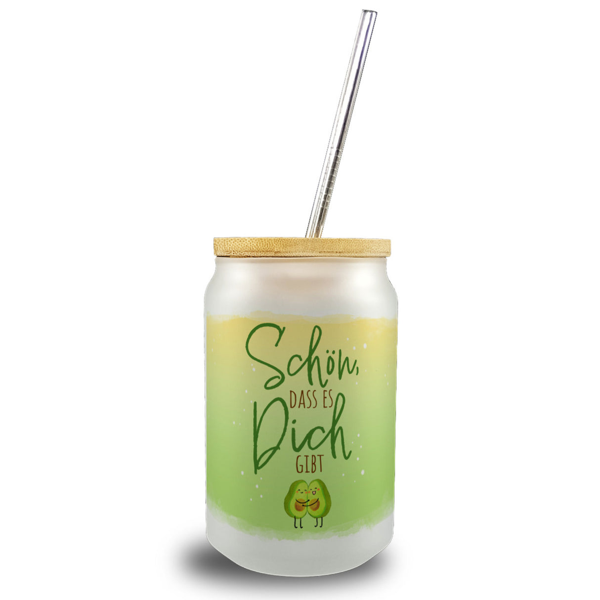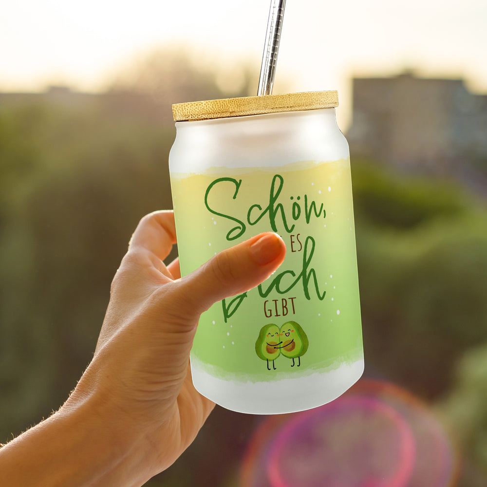 Avocado Trinkglas mit Bambusdeckel mit Spruch Ich Avocado dich