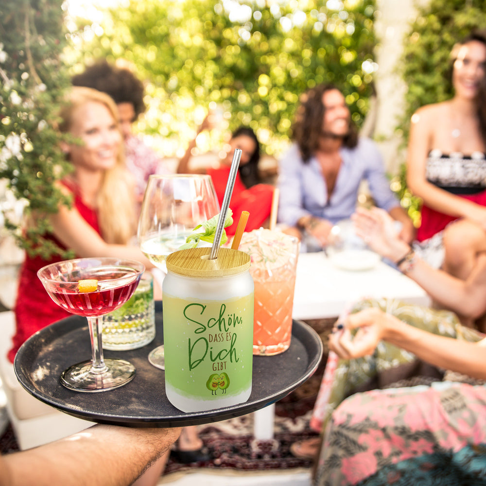 Schön dass es dich gibt Trinkglas mit Bambusdeckel mit Spruch