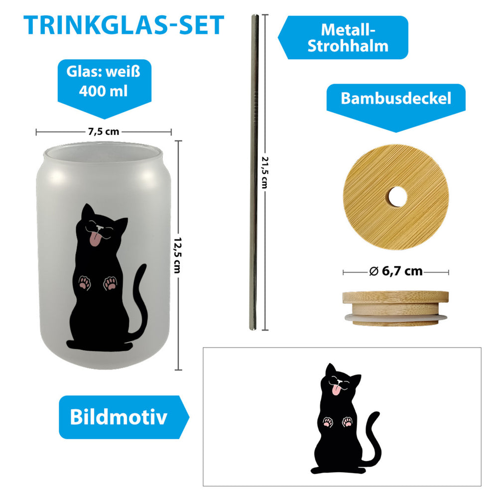 - Lieferumfang: 1x Schwarze Katze Trinkglas mit Bambusdeckel