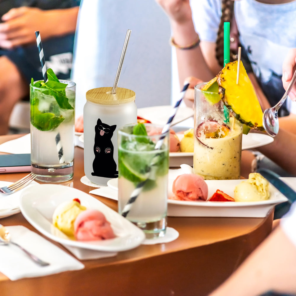 - Das Trinkglas mit Katze Motiv ist ein echter Hingucker! Eine freche schwarze Katze, die das Glas abschleckt, ziert das Glas und sorgt für Heiterkeit. Dieses Glas ist ein Muss für jeden Katzenmenschen und Haustierliebhaber. Es bringt einfach gute Laune in jede Küche!