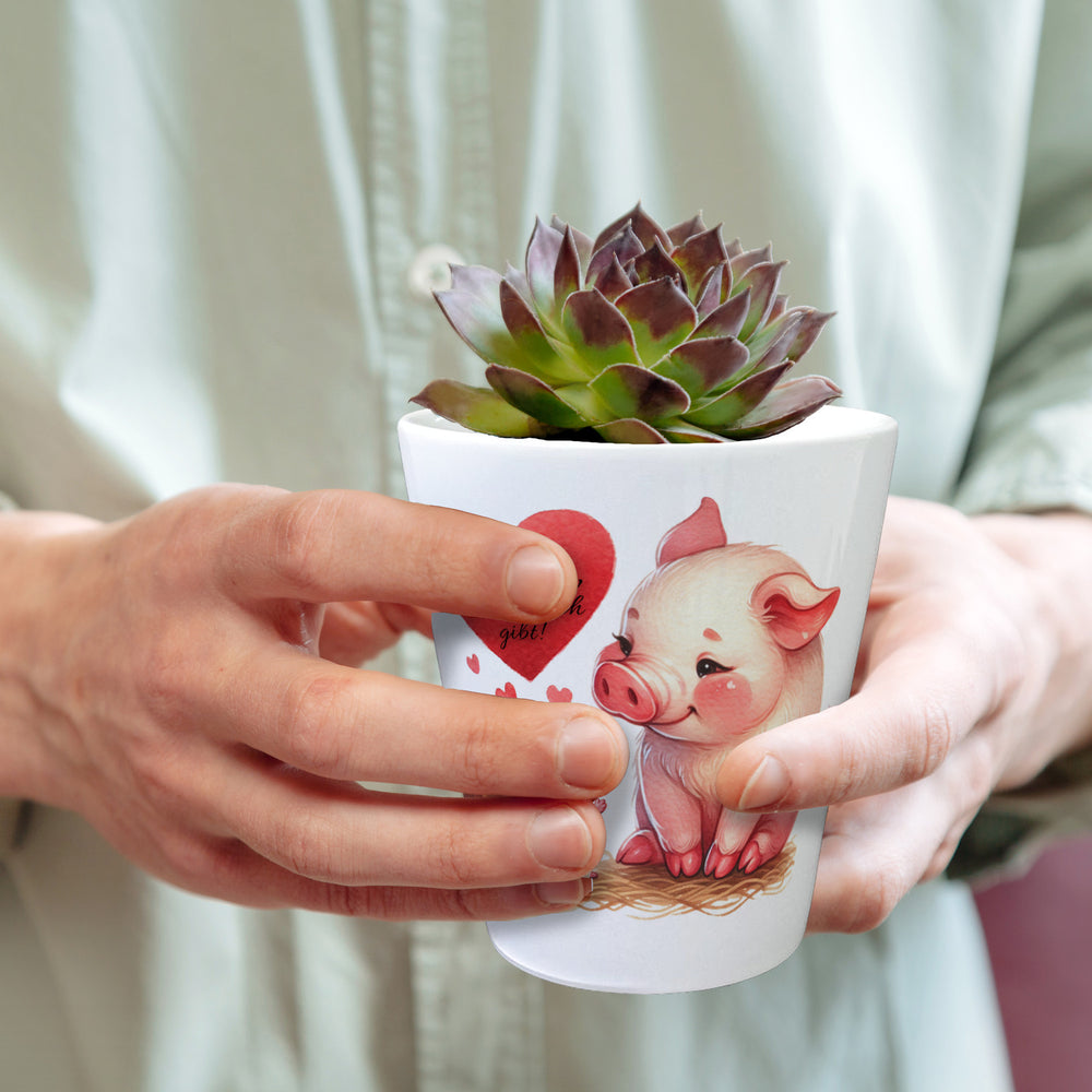 Schwein mit Maus und Herz Blumentopf mit Spruch Schön dass es dich gibt