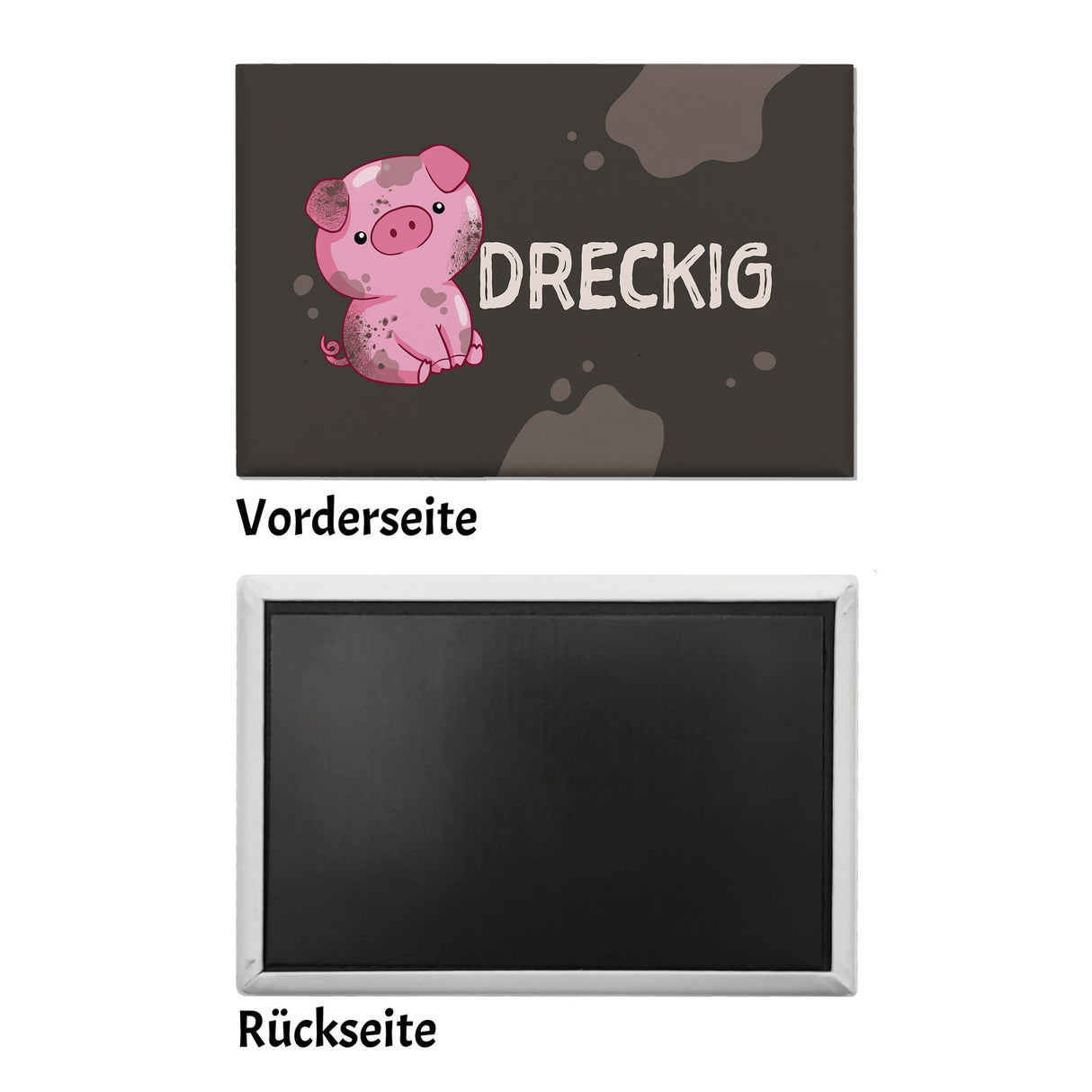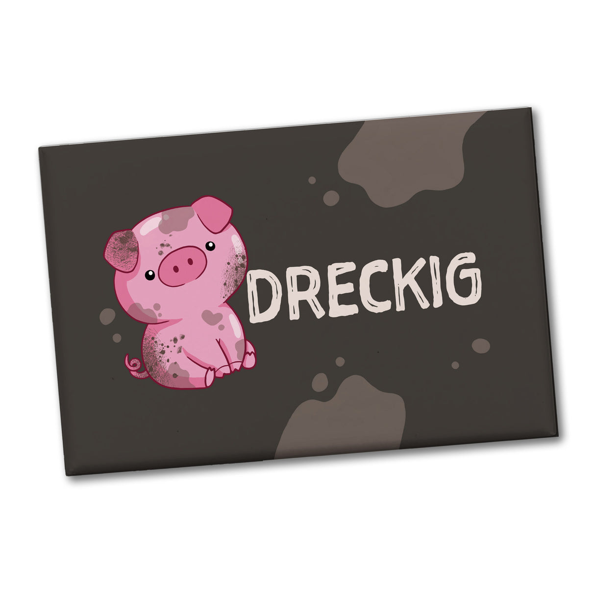 Schwein Souvenir Magnet eckig mit Spruch Dreckig