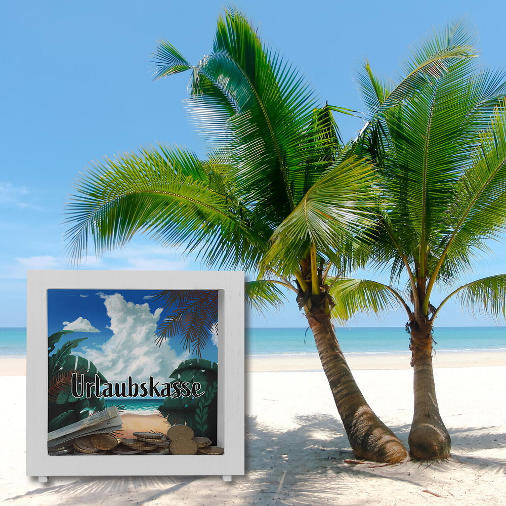 Spardose mit schönem Strandmotiv - Für mehr Abhängen in der Hängematte