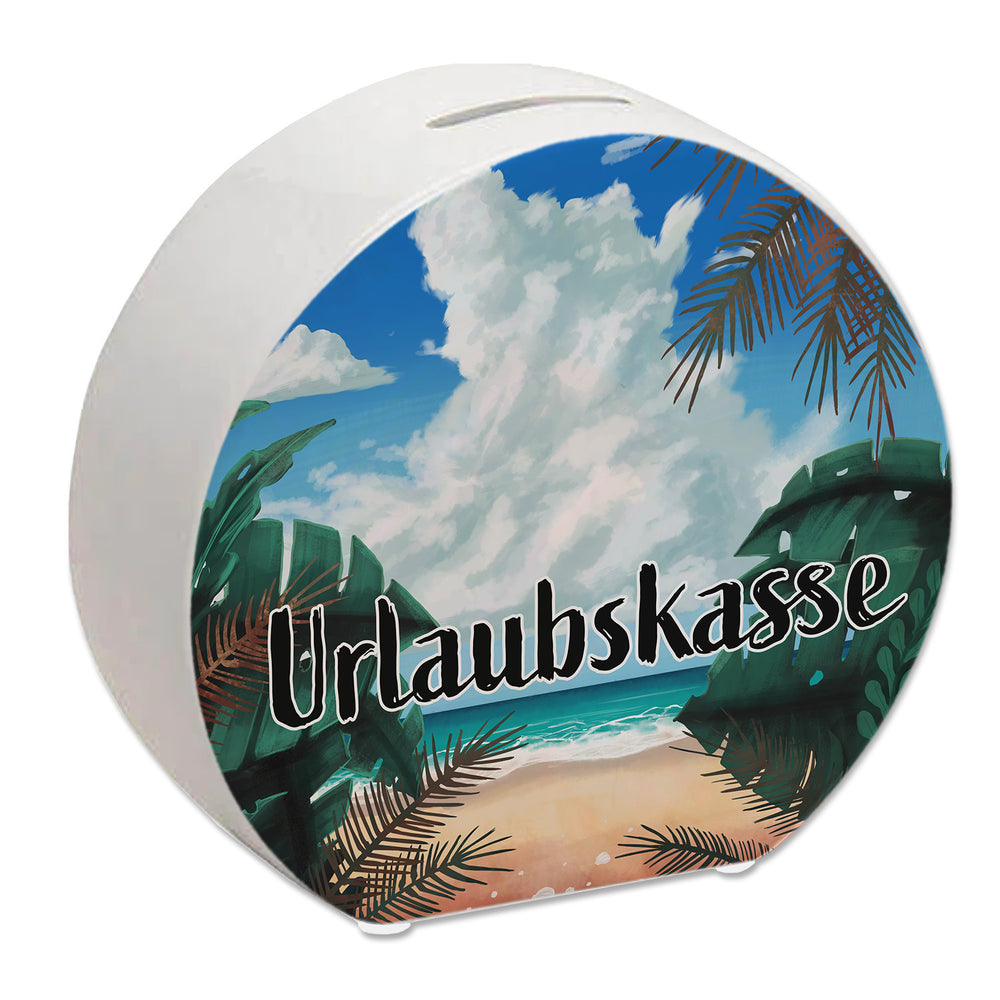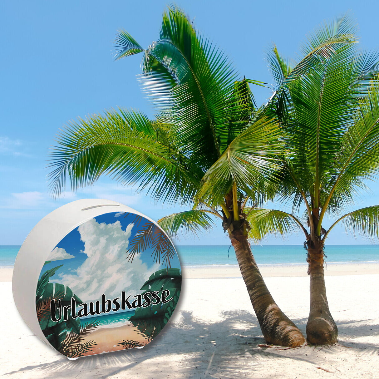 - 1x Spardose aus Keramik mit sommerlichem Strandmotiv und Palmen - Urlaubskasse in der gewählten Ausführung