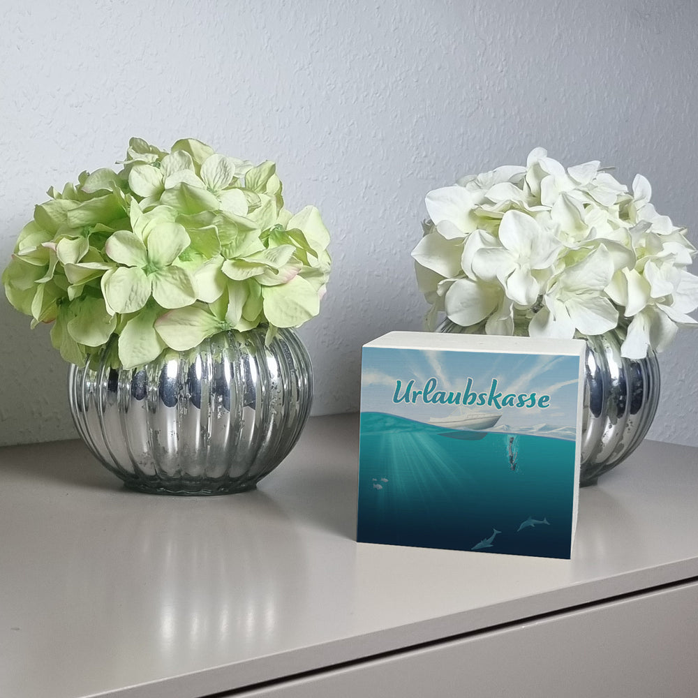 - 1x Spardose im Taucher-Design mit Boot und Text - Urlaubskasse in der gewählten Ausführung