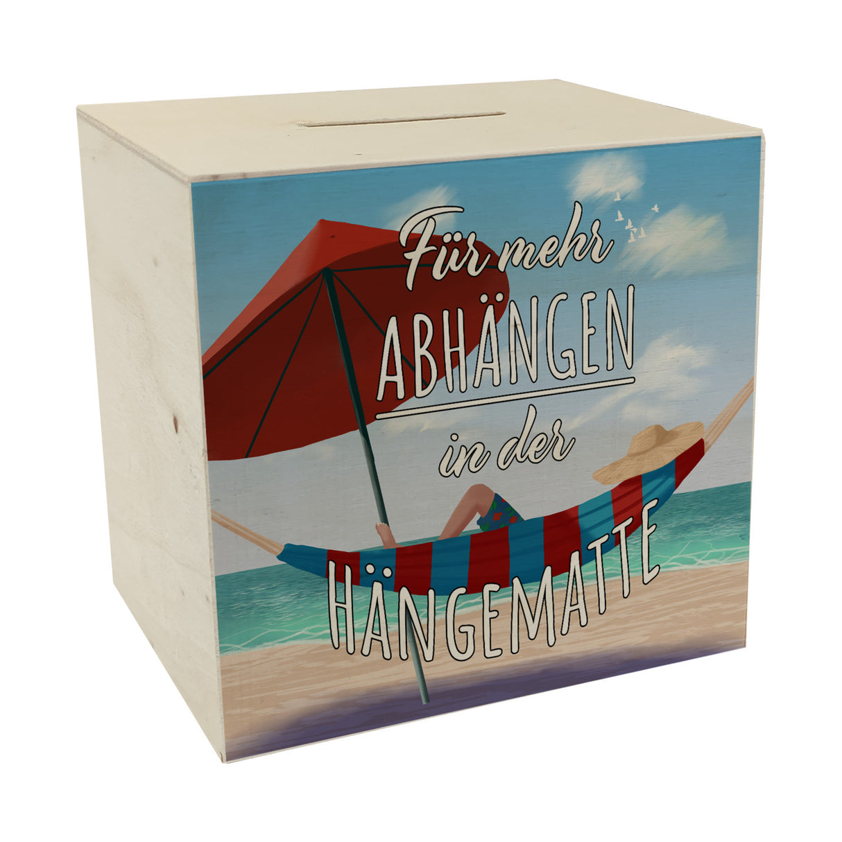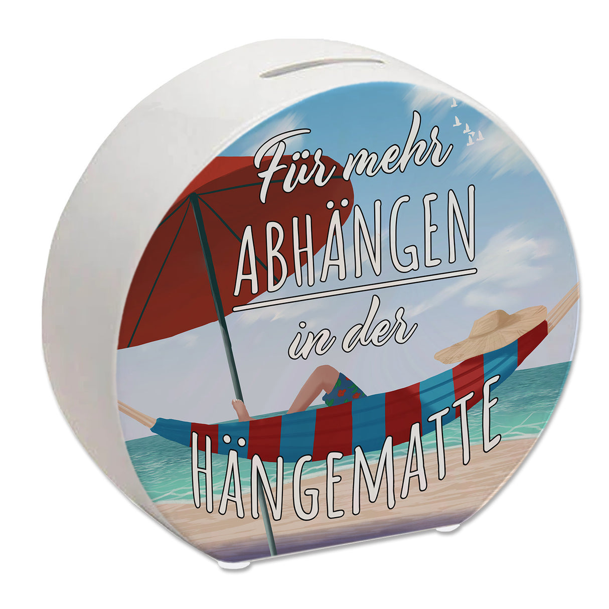 - 1x Spardose mit schönem Strandmotiv - Für mehr Abhängen in der Hängematte in der gewählten Ausführung