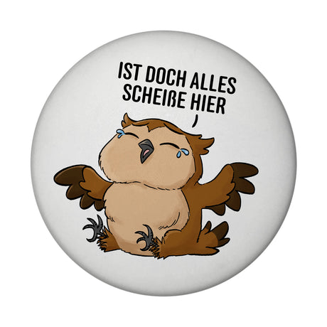 Eule - Heule Magnet rund rund mit Spruch Ist doch alles scheiße hier