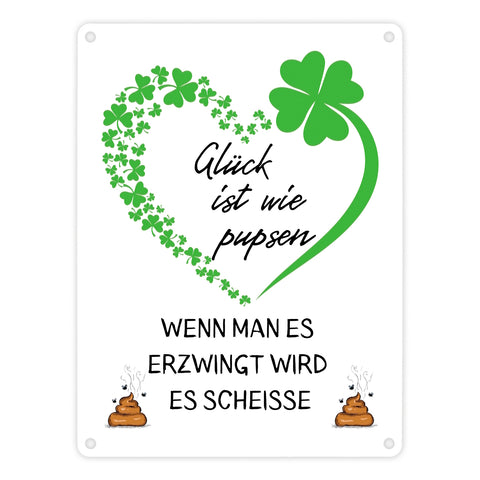 Kleeblätter Metallschild in 15x20 cm mit Spruch Glück ist unerzwingbar
