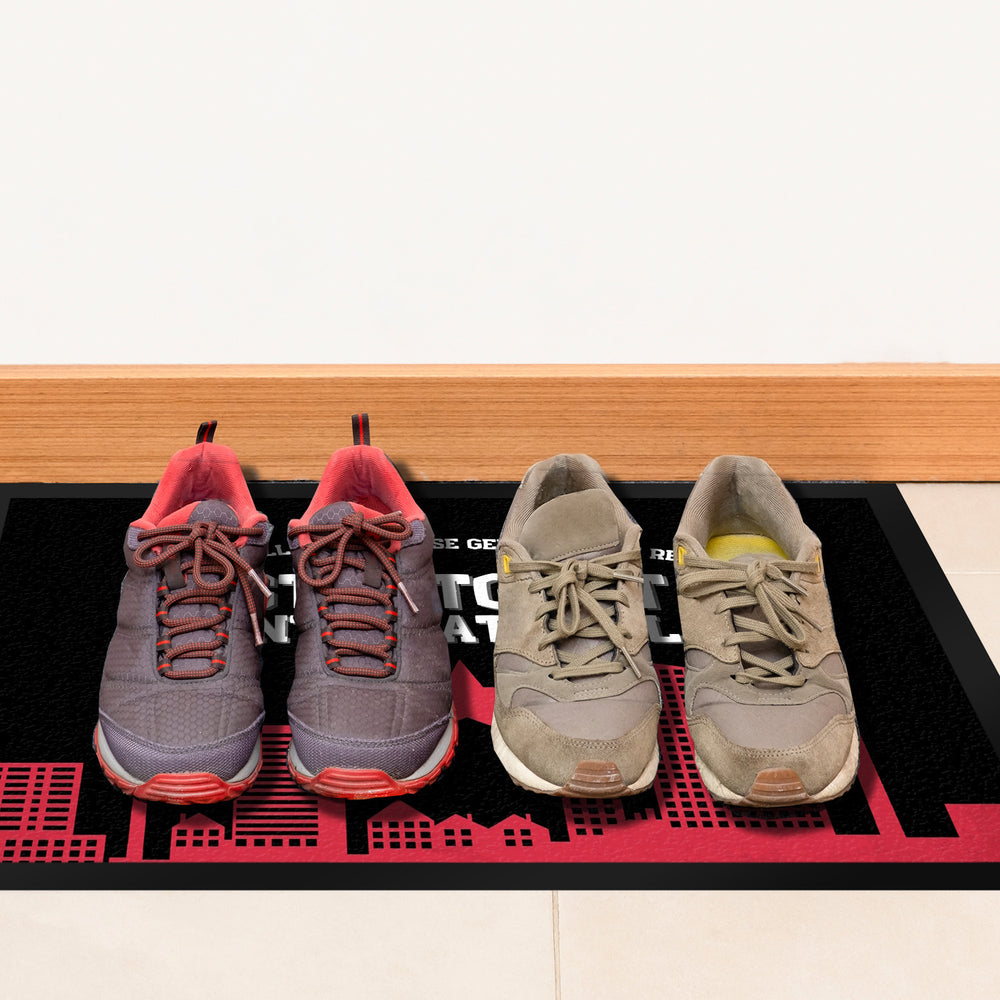 - Erhältlich in den Größen 50x35cm, 60x40cm und 75x50cm. Aus pflegeleichter Kunstfaser mit praktischer rutschfester Gummiunterseite und niedrigem Gummirand. Mit Sorgfalt bedruckt in unserer Fußmatten-Manufaktur in Deutschland.