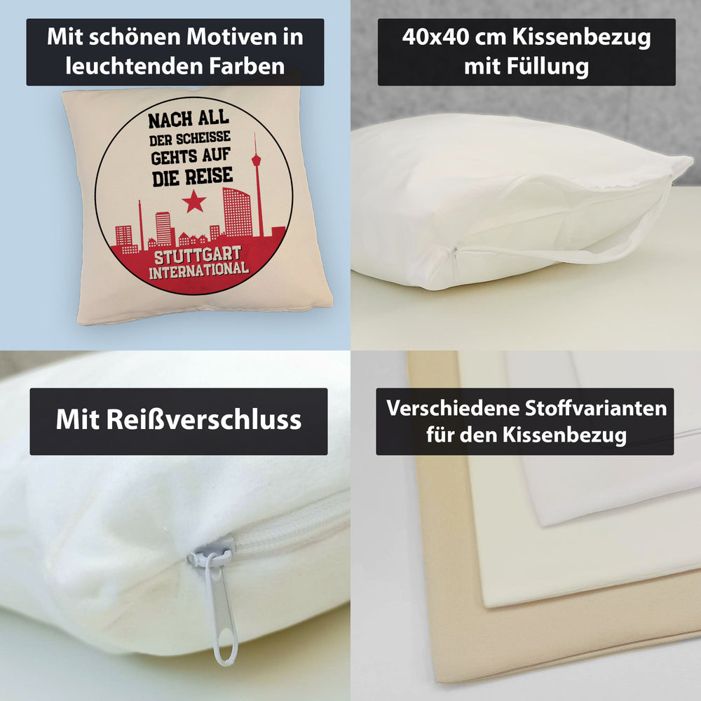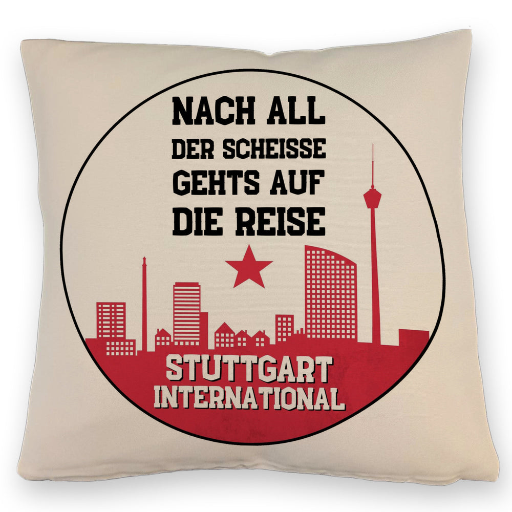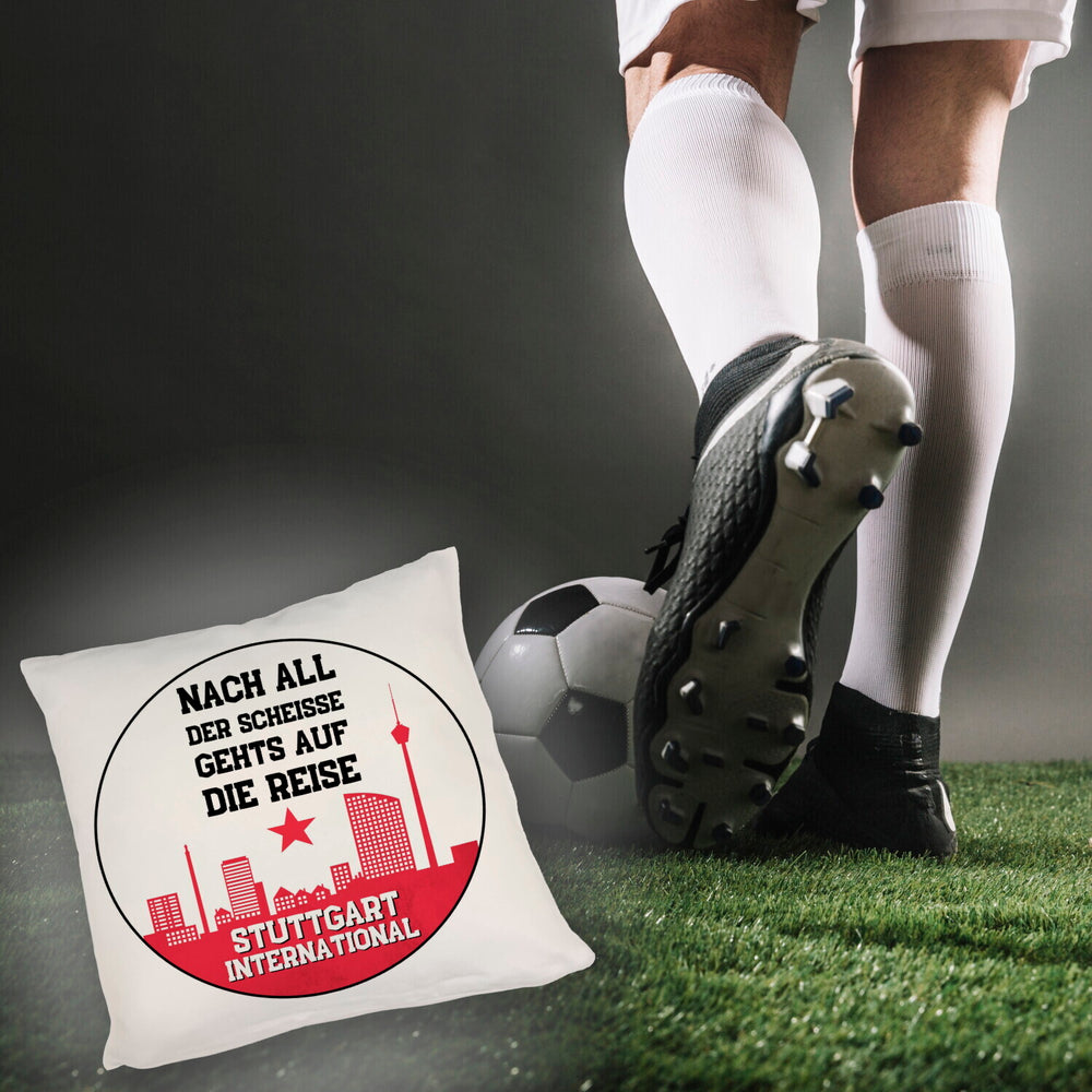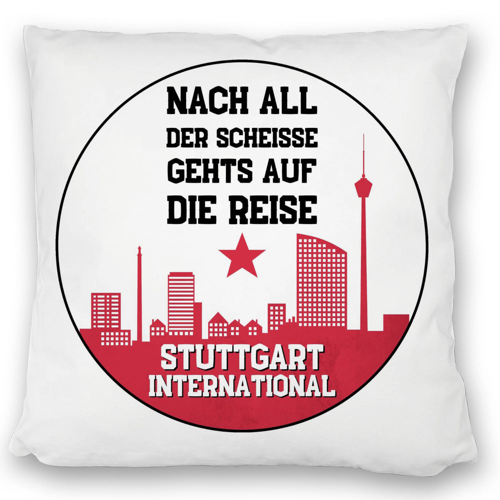 - Platzieren Sie Ihr Haupt auf diesem phänomenalen "Stuttgart Europapokal Kissen", und träumen Sie von glorreichen Toren! Mit seinem witzigen Spruch "Nach all der Scheiße gehts auf die Reise - Stuttgart International" sorgt es garantiert für Lacher und zeigt, dass Ihr Herz am Neckar schlägt!
