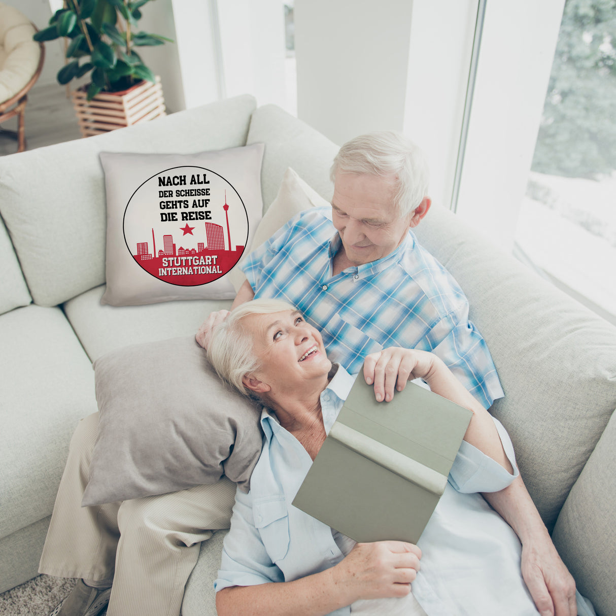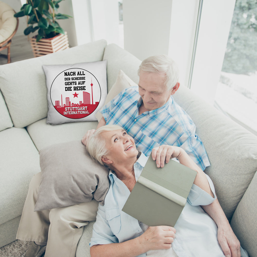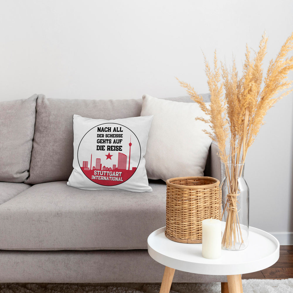 - Platzieren Sie Ihr Haupt auf diesem phänomenalen "Stuttgart Europapokal Kissen", und träumen Sie von glorreichen Toren! Mit seinem witzigen Spruch "Nach all der Scheiße gehts auf die Reise - Stuttgart International" sorgt es garantiert für Lacher und zeigt, dass Ihr Herz am Neckar schlägt!