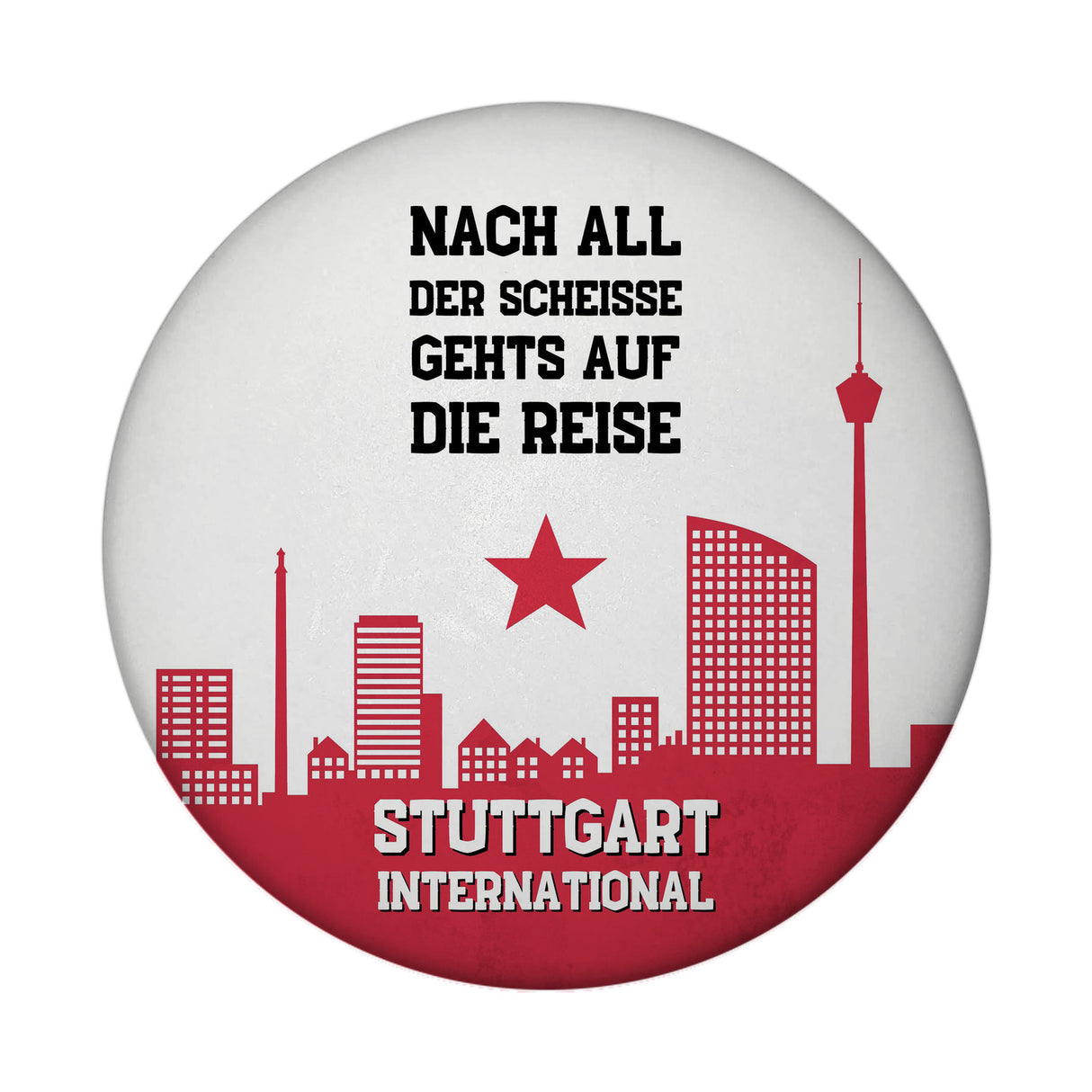 - 1x Stuttgart Europapokal Magnet rund mit Spruch Stuttgart International in der gewählten Ausführung