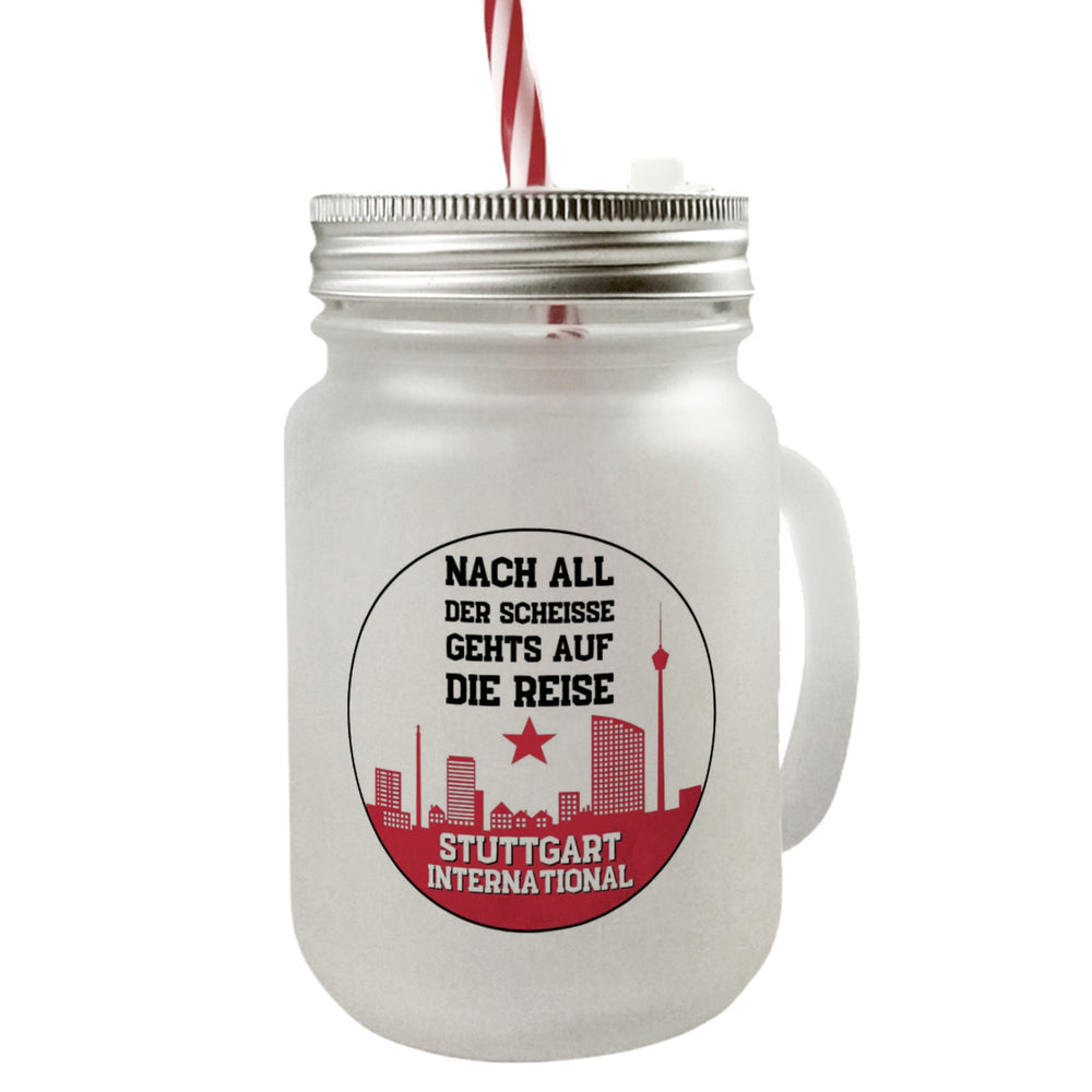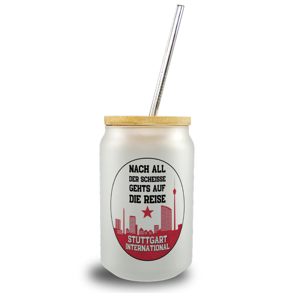 Stuttgart Europapokal Trinkglas mit Bambusdeckel mit Spruch Stuttgart International