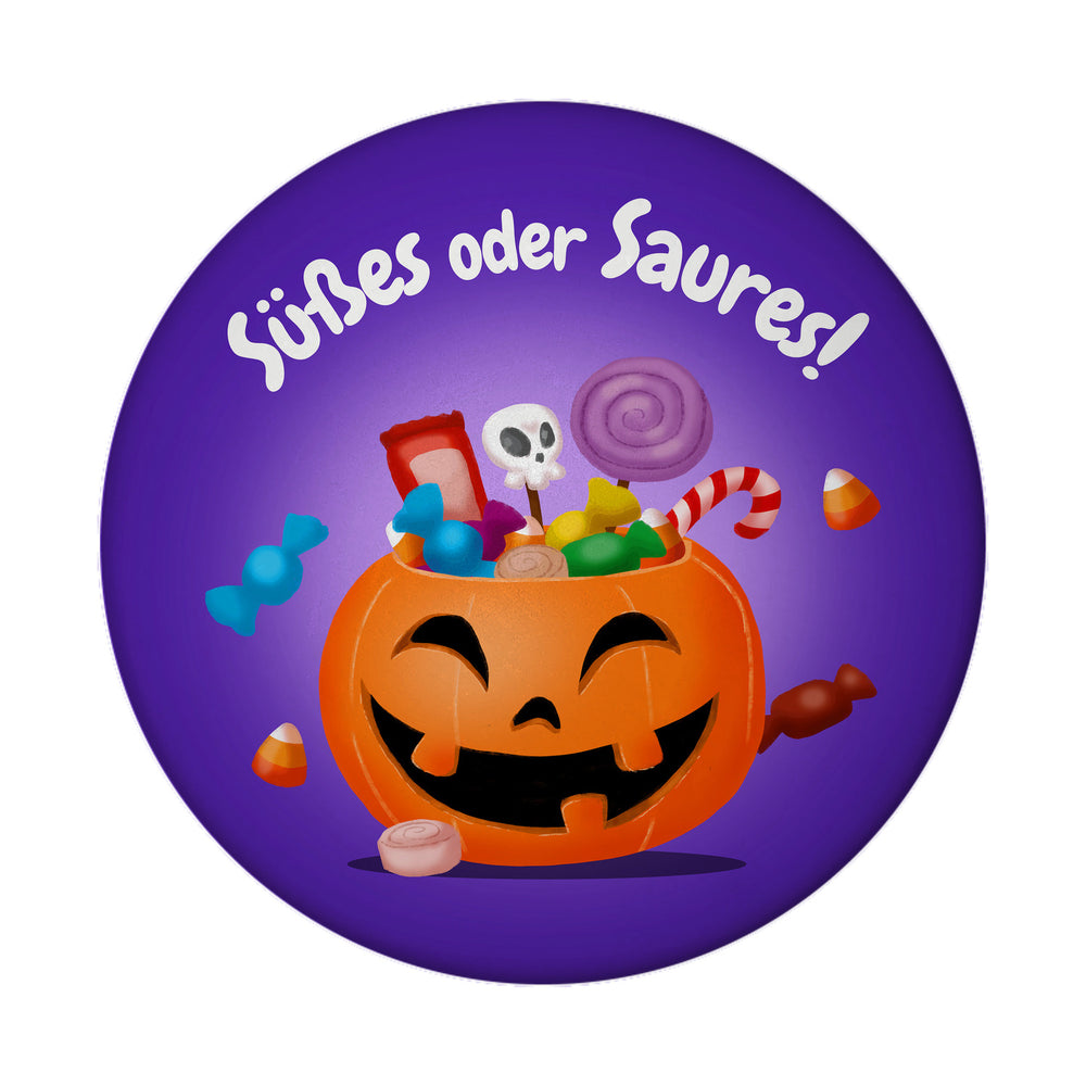 - 1x Süßes oder Saures Halloween Magnet mit Kürbis und Süßigkeiten in der gewählten Ausführung