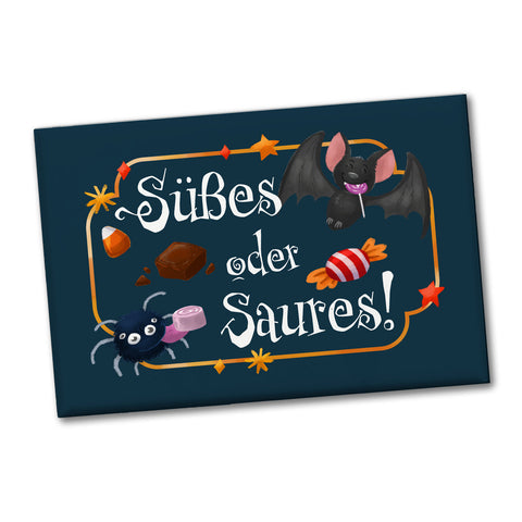 Süßes oder Saures Halloween Souvenir Magnet mit Spinne und Fledermaus