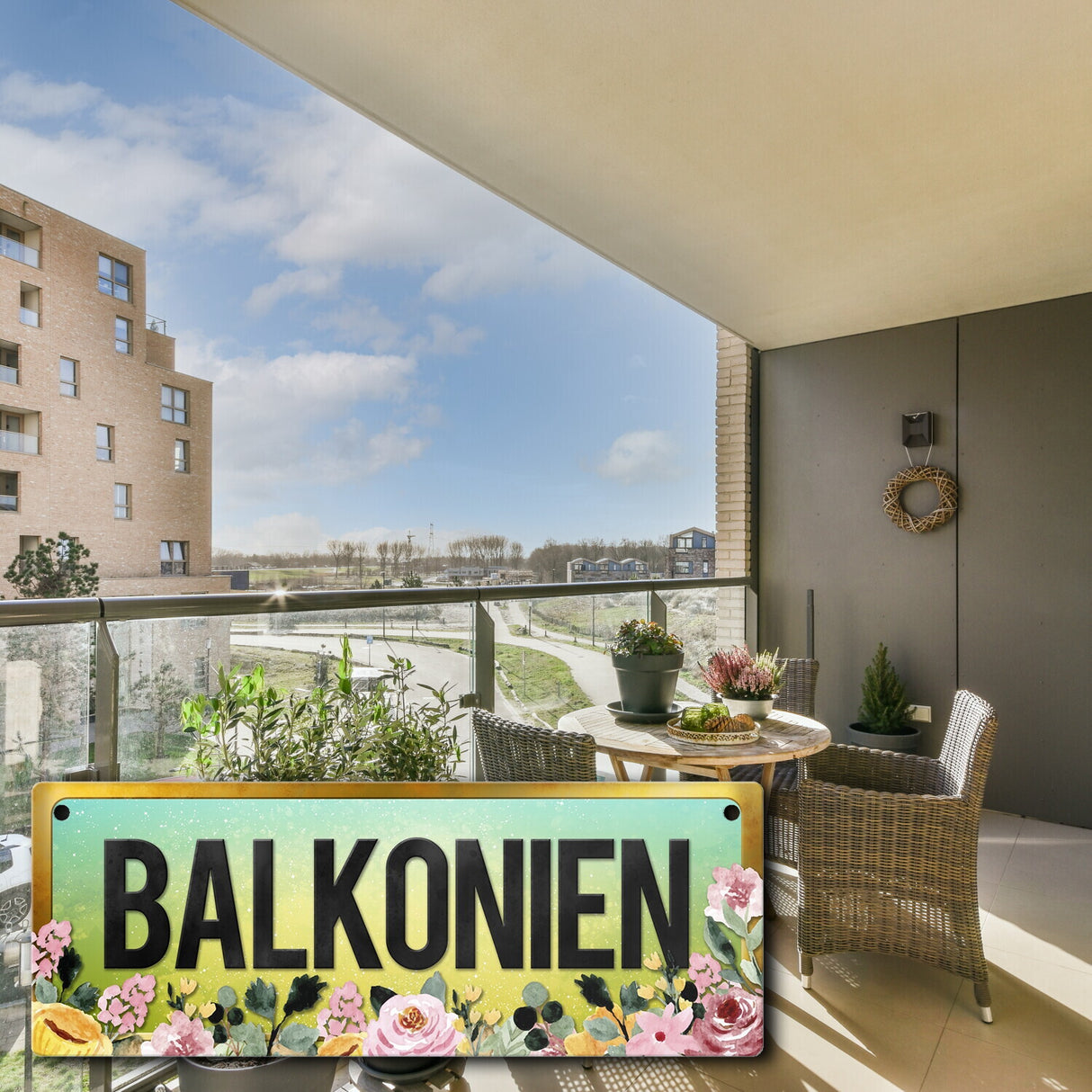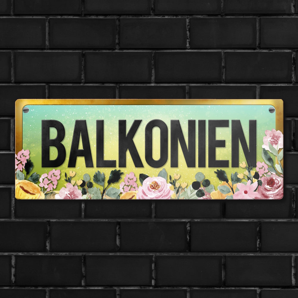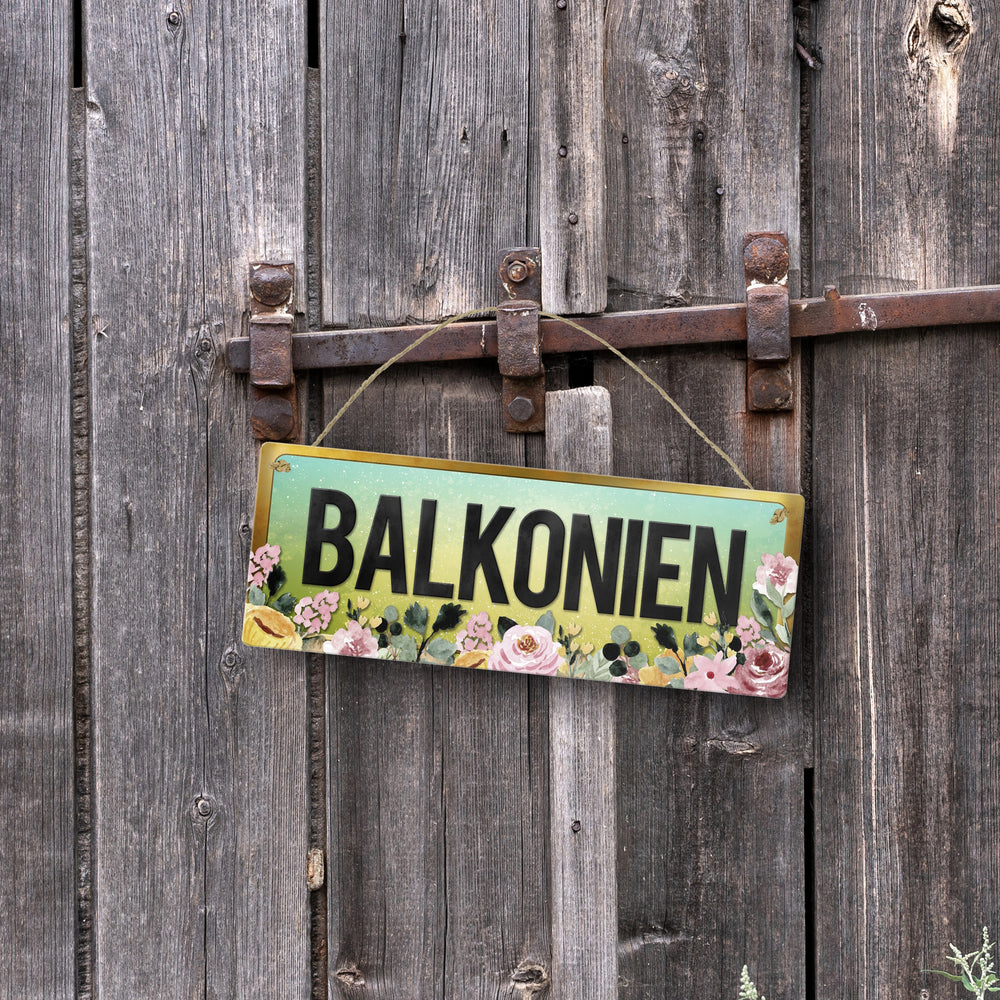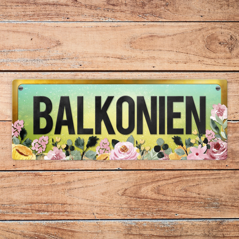 - 1x Urlaub Metallschild mit Blumen Motiv und Spruch: Balkonien in der gewählten Größe