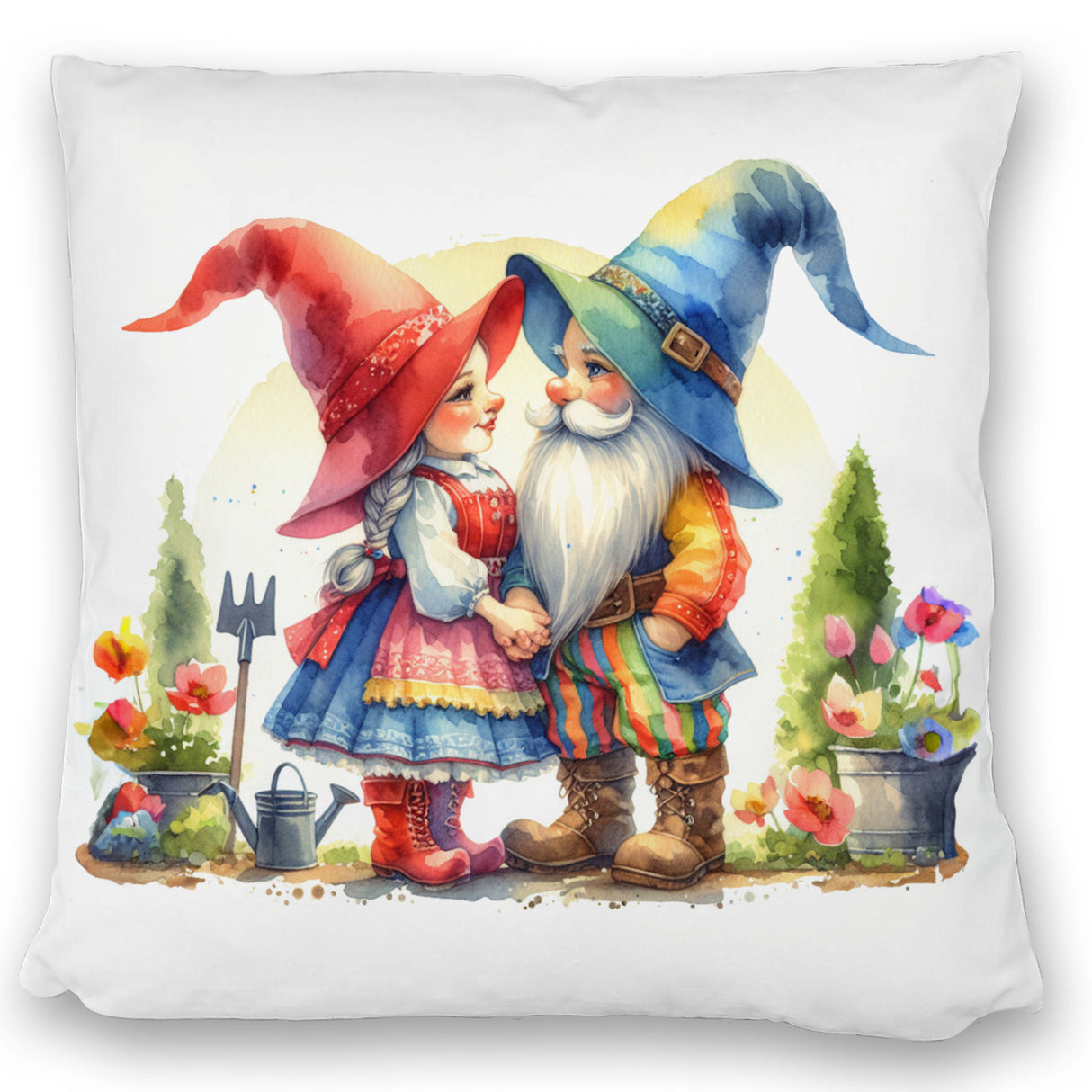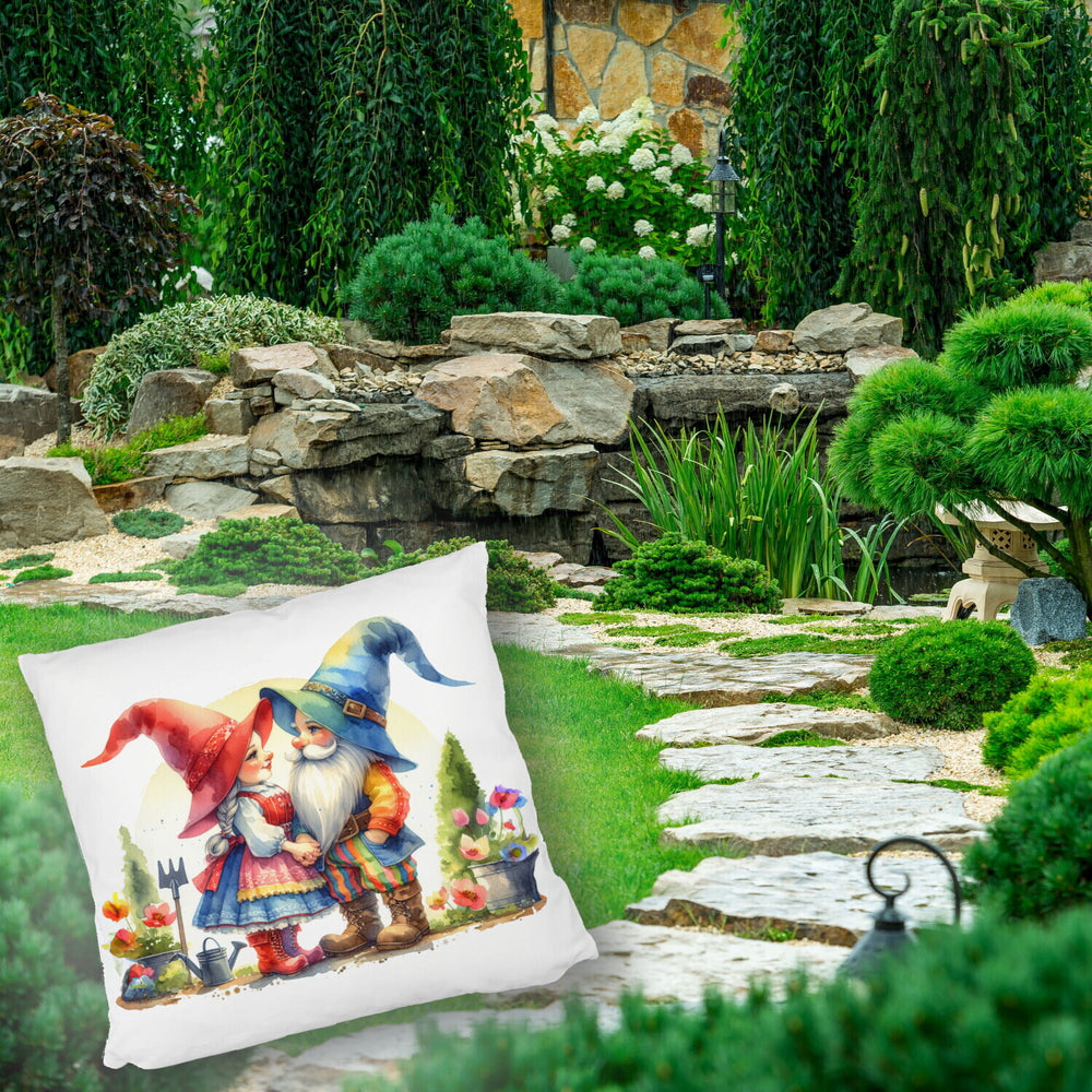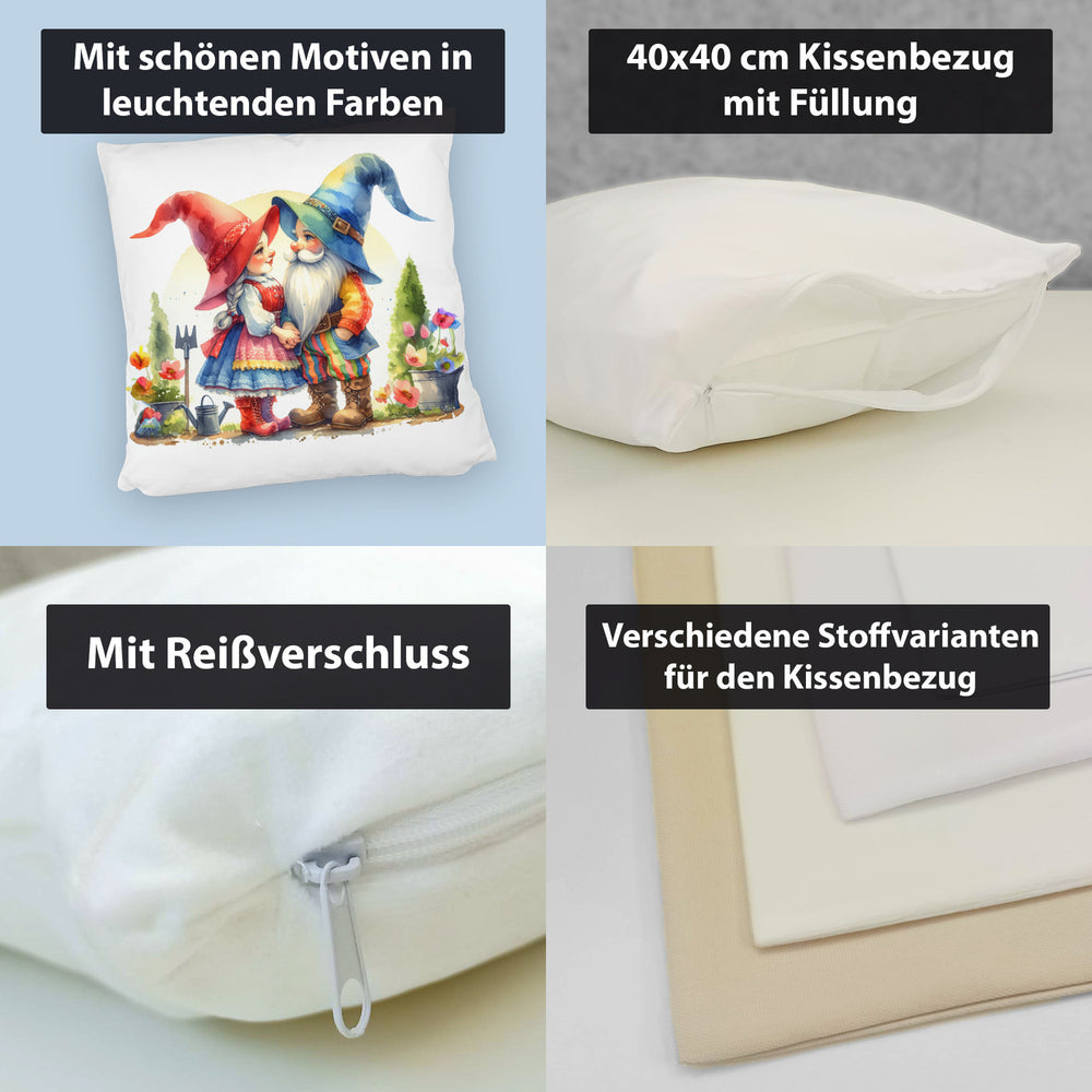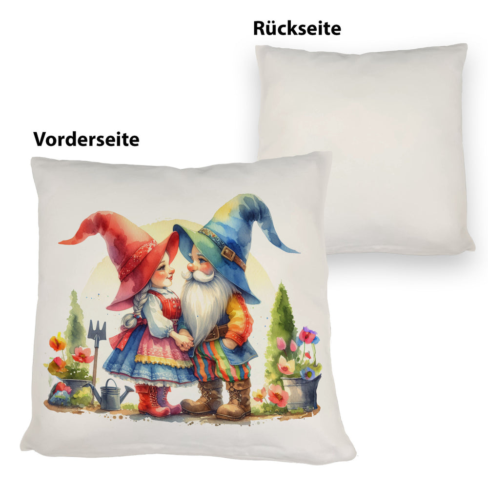 • 1x Verliebte Gartenzwerge im Garten Kissen in der gewählten Ausführung