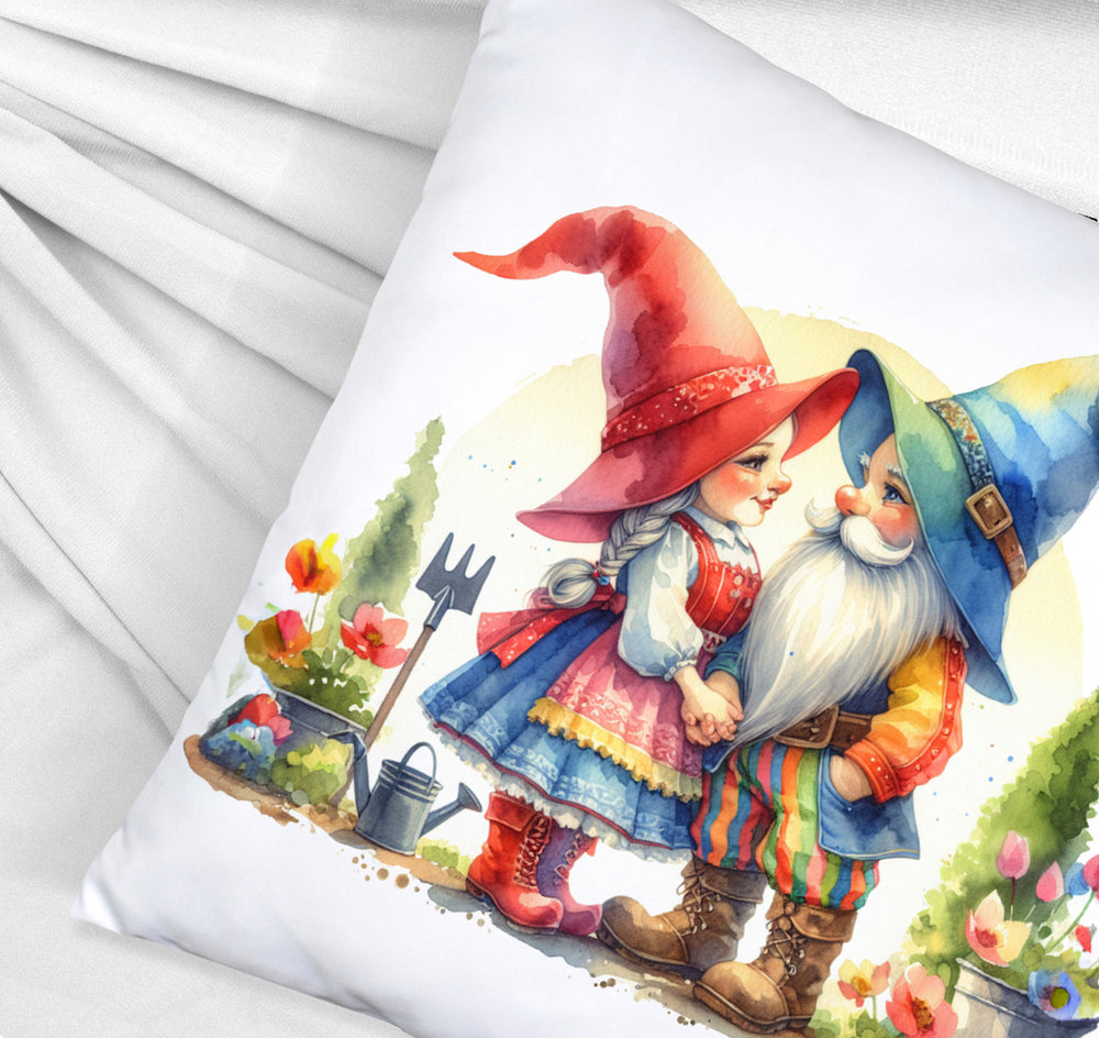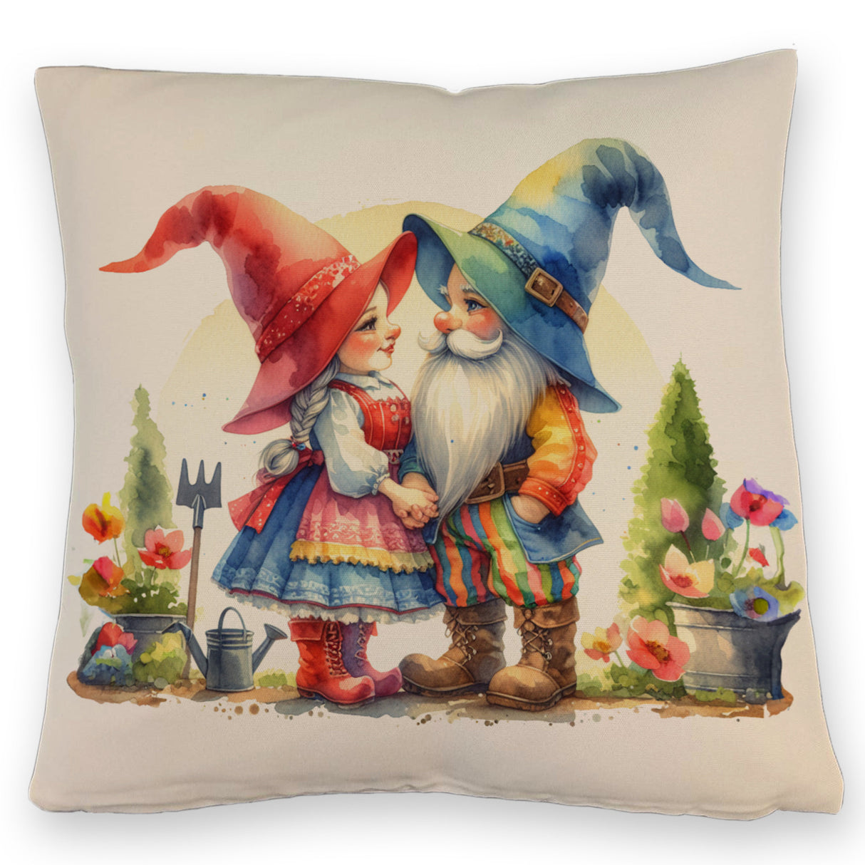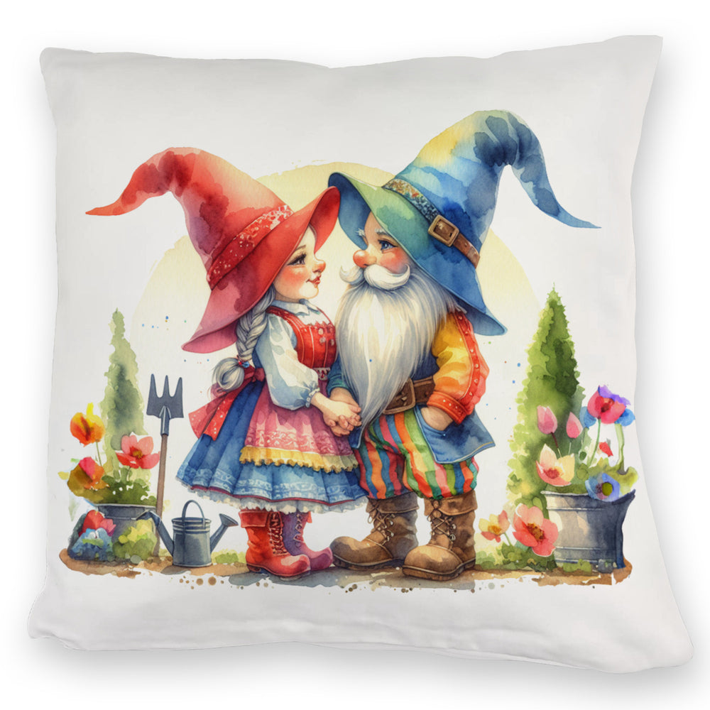 • 1x Verliebte Gartenzwerge im Garten Kissen in der gewählten Ausführung