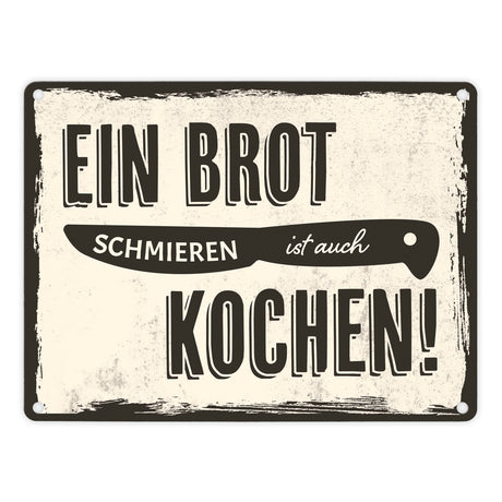 Metallschild mit lustigem Spruch für Köche - Ein Brot schmieren ist auch kochen