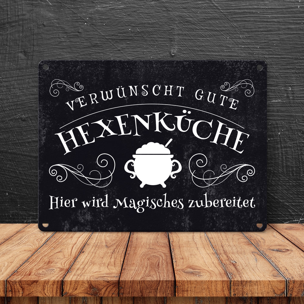Verwünscht gute Hexenküche Halloween Metallschild mit lustigem Spruch