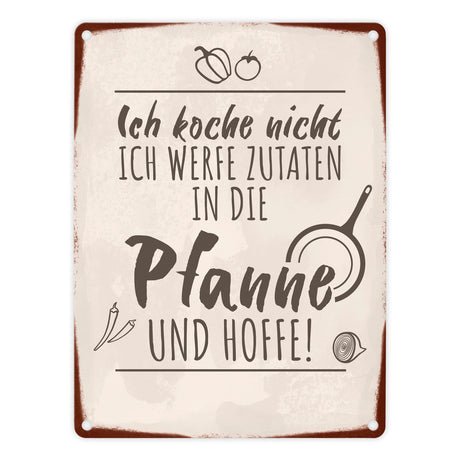 Ich koche nicht ich werfe Zutaten in die Pfanne und hoffe Metallschild